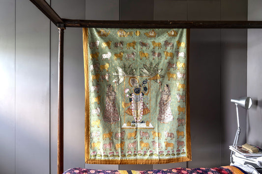 Colgante de pared Gujurati de algodón bordado a mano WH93