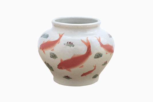 Olla china vintage decorada con peces dorados y carpas koi