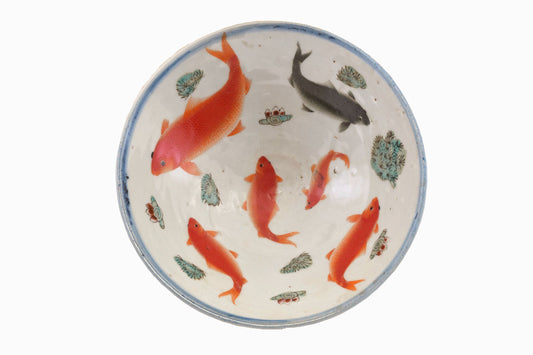 Cuenco chino vintage decorado con peces dorados y carpas koi
