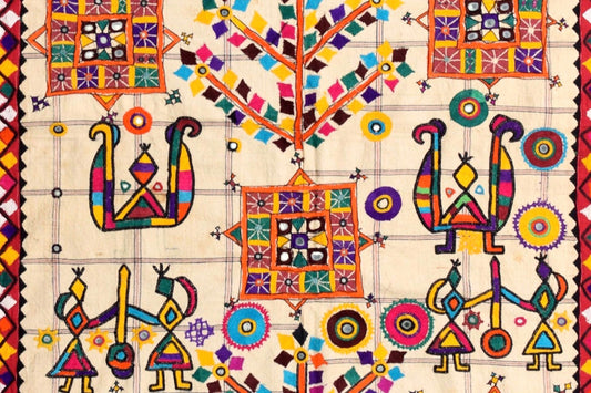 Colgante de pared de algodón bordado vintage de Gujurat WH28