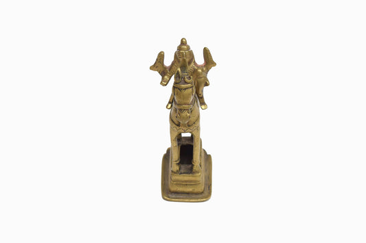 Jinete y caballo de latón indio vintage (¡oreja perdida en la batalla!)