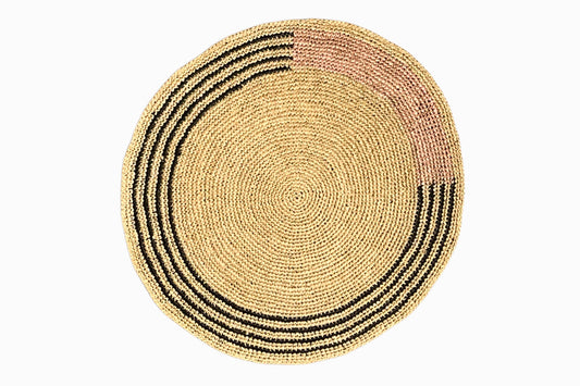 Circular Straw Table Mats Black Pink (Set of 2)