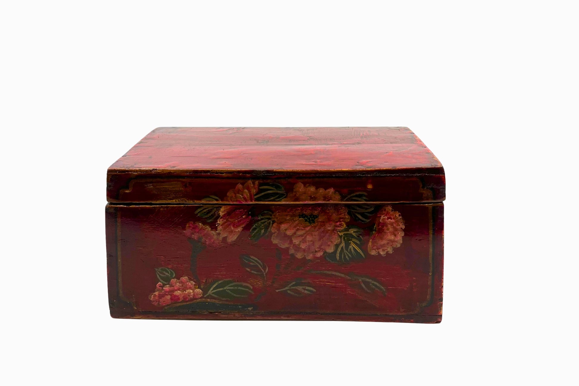 A pretty wooden vintage box, hand painted with chrysanthemums.