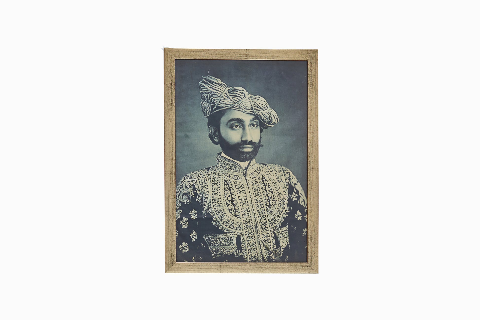 Una fotografía de Nawab Muhammad Khan de Palanpur con un atuendo fabulosamente ornamentado.
