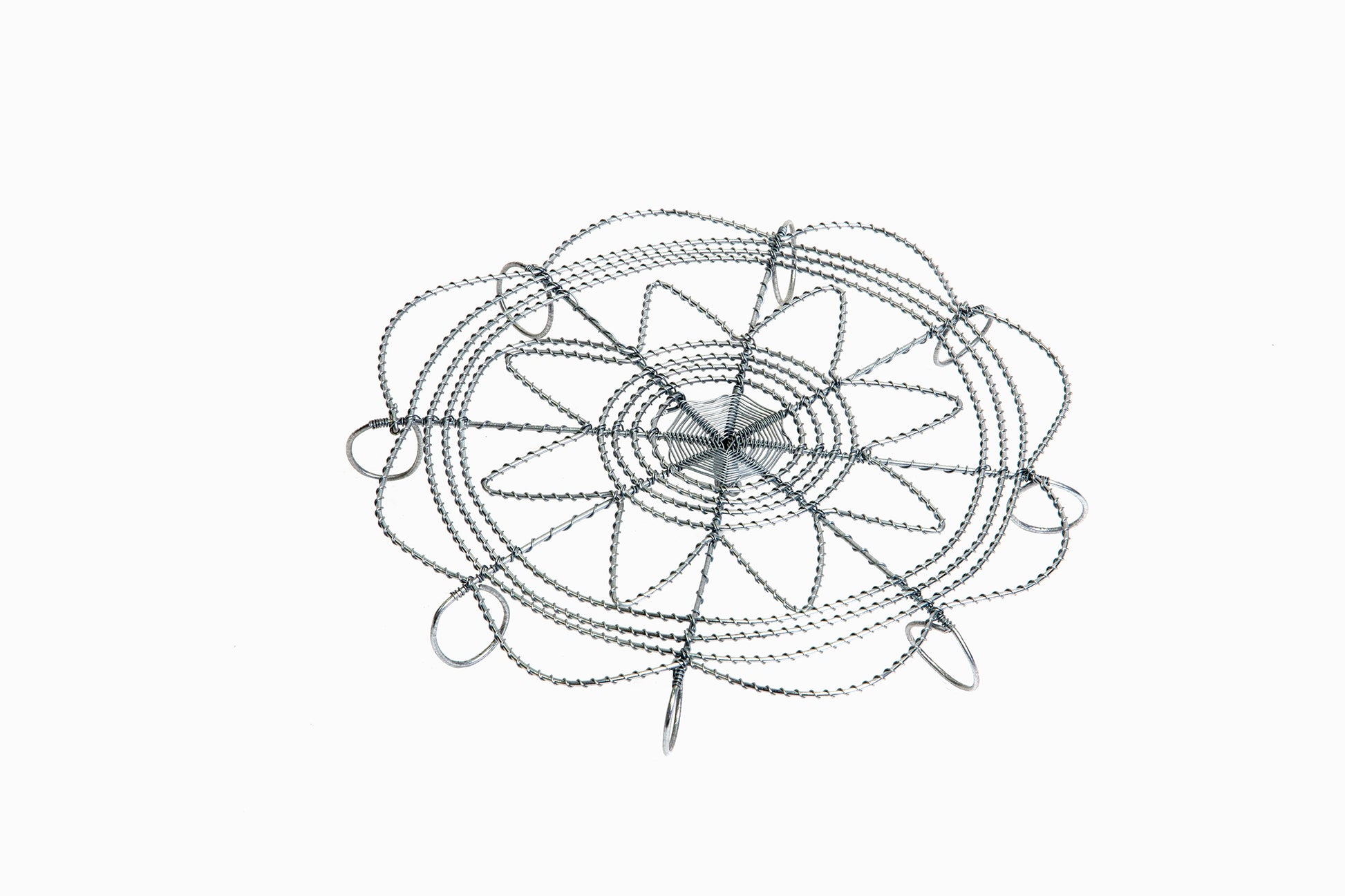 Nuestros atractivos salvamanteles de alambre metálico están hechos a mano en Suecia. Vienen en dos tamaños, 29 cm de diámetro (11,5 pulgadas) y 20 cm de diámetro (8 pulgadas).