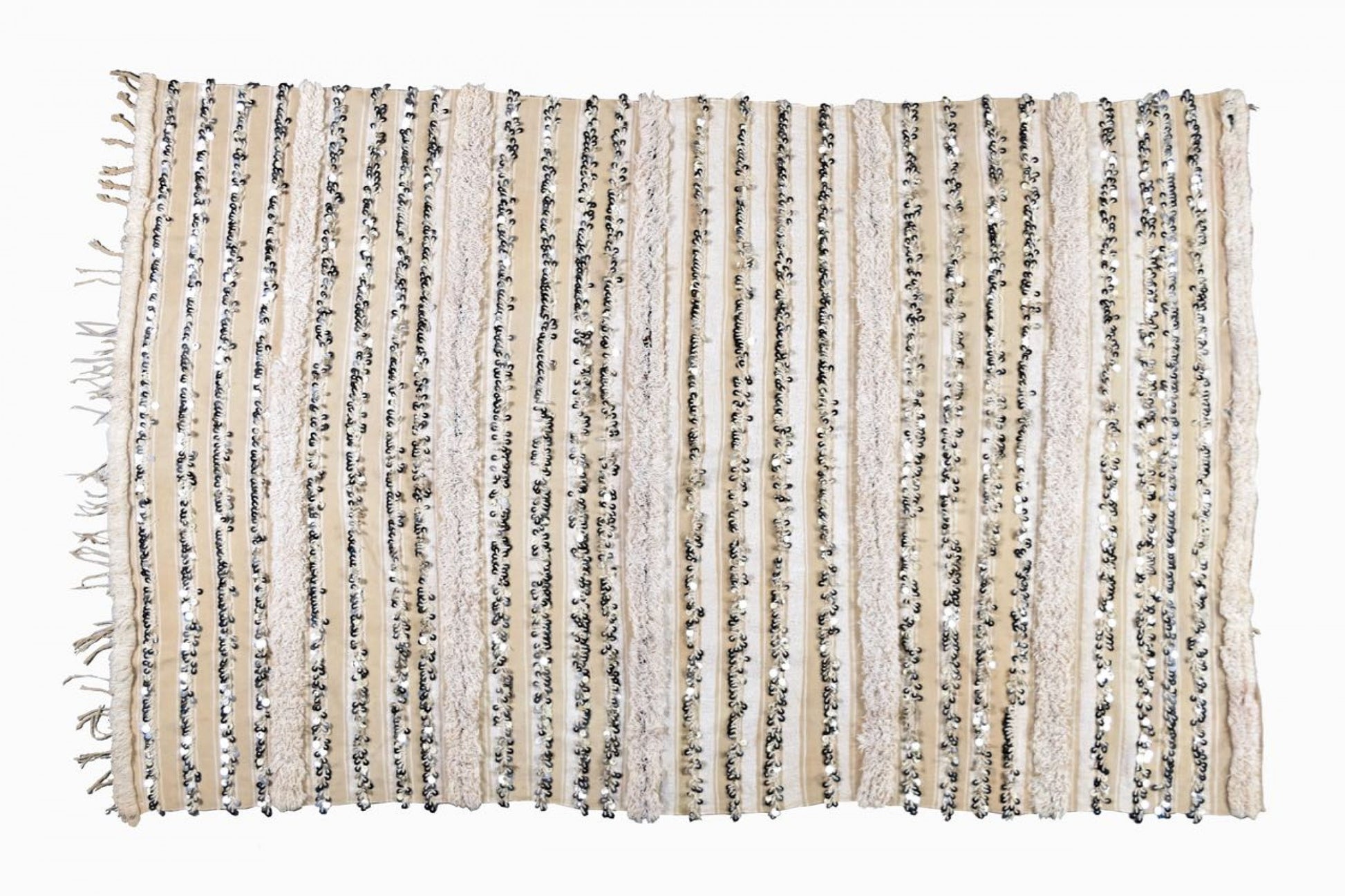 Estas mantas nupciales marroquíes con lentejuelas, o "handira", están tejidas con lana de oveja, algodón y lino por los bereberes del Medio Atlas en el norte de Marruecos. Son confeccionados por la familia de la novia y son usados por la novia a modo de capa, tanto durante la ceremonia nupcial como en el viaje hacia el nuevo hogar conyugal. Se han vuelto muy populares como cubrecamas.
