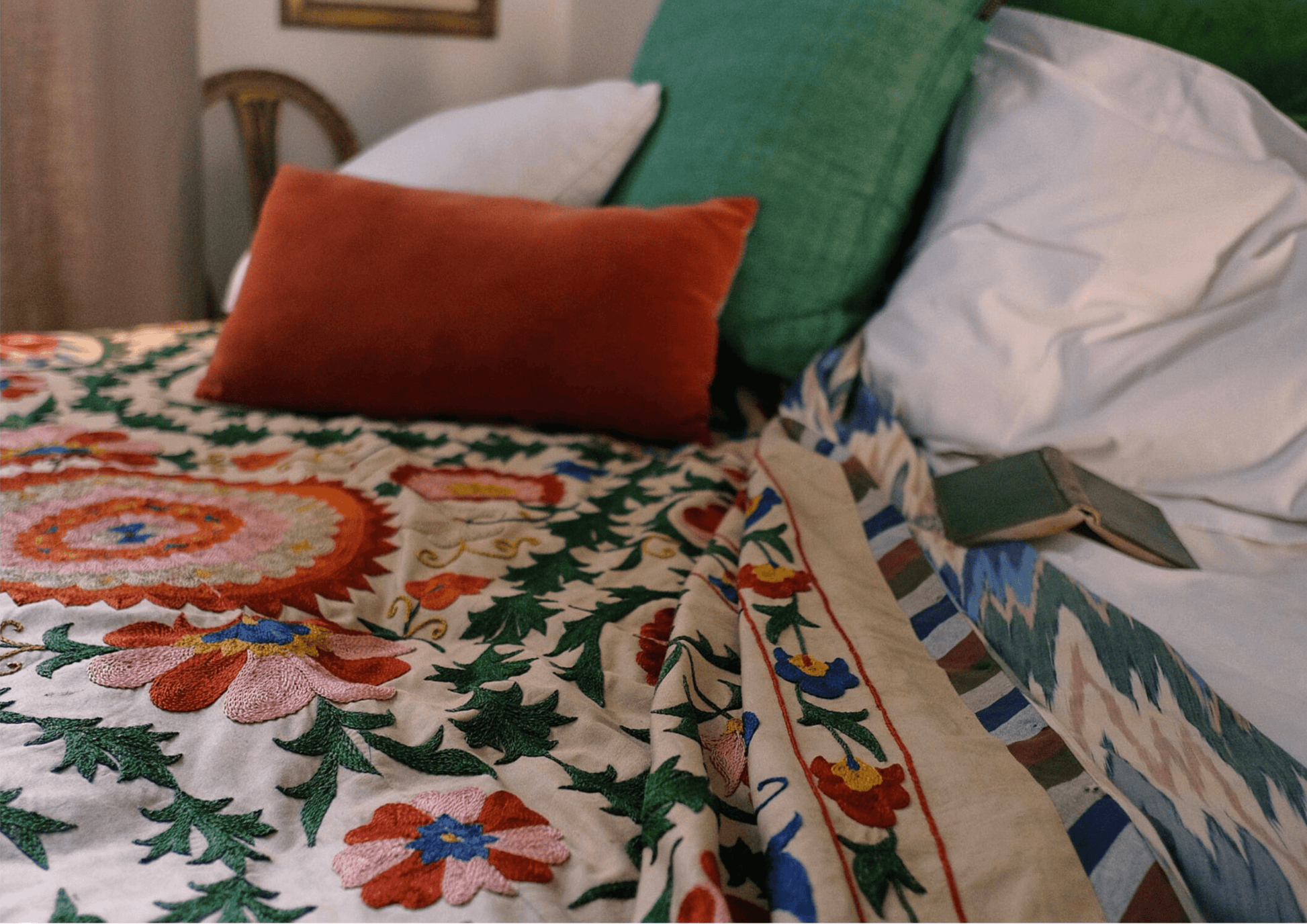 Multicoloured flower Suzani bedspread