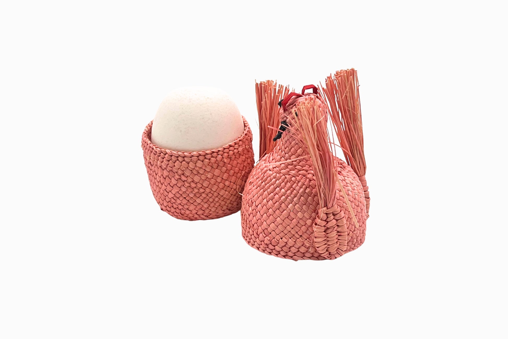 What a cracking egg cup! A mini pink straw basket for just one egg.