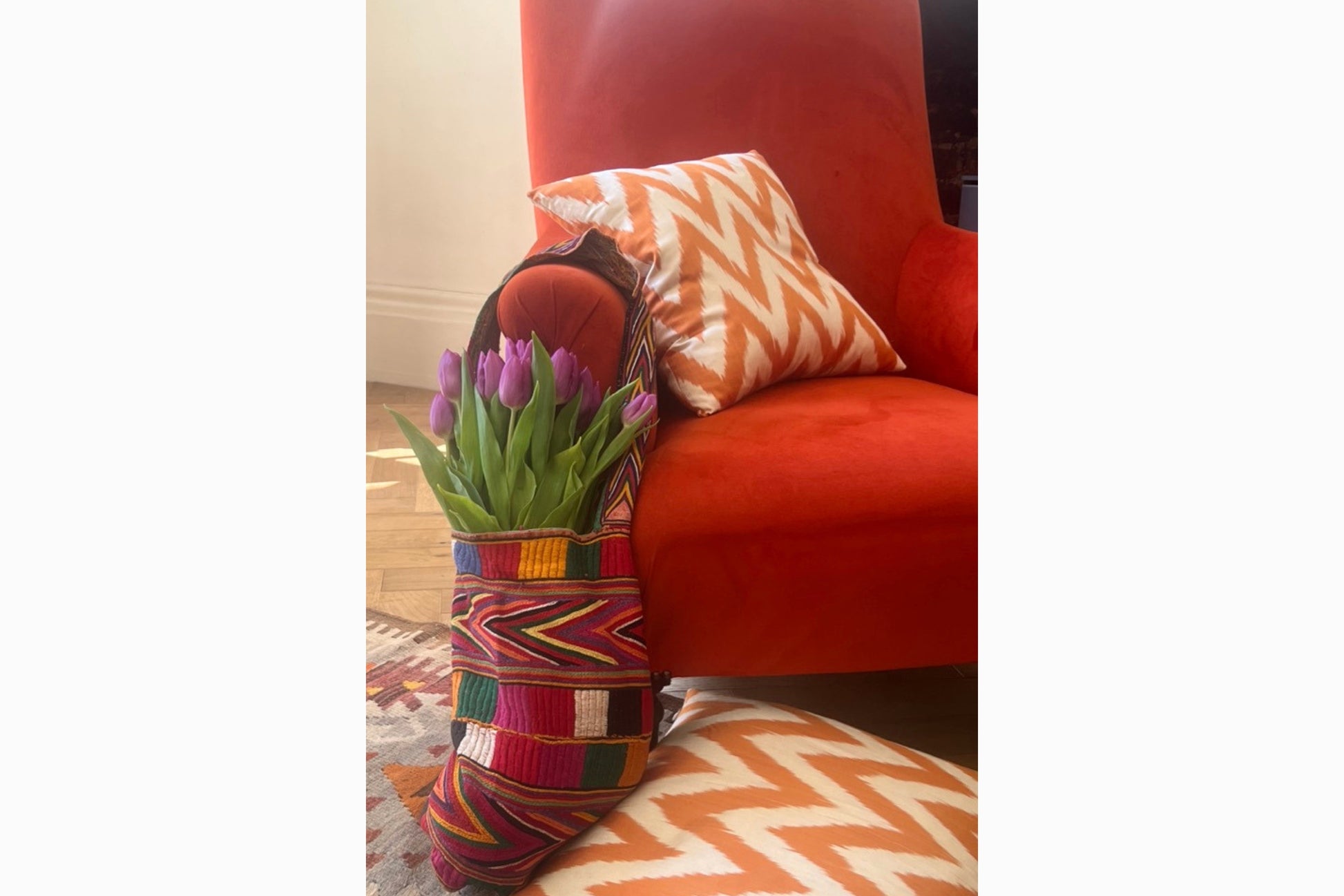 A magnificent, heavily embroidered bag from Rajasthan. These bags were often given in a bride's dowry.