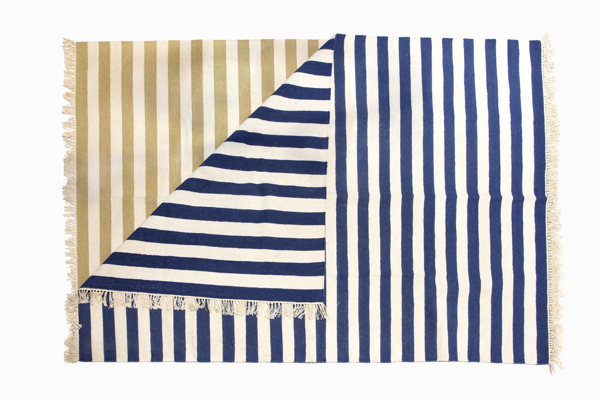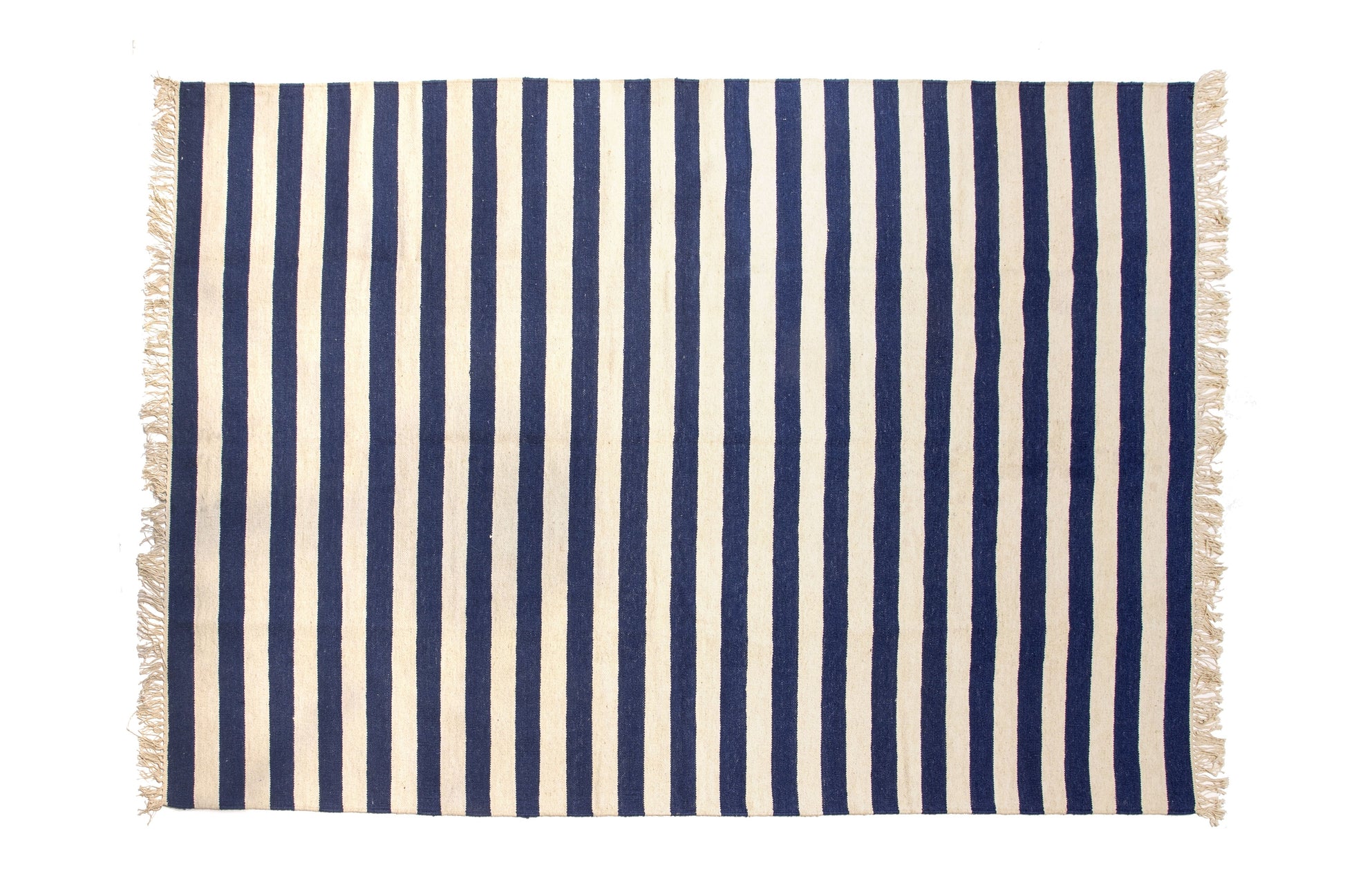 Alfombras contemporáneas de lana a rayas fabricadas en Rajashtan. Las muestras se muestran en azul y crema, gris pardo y crema, pero estas alfombras se fabrican bajo pedido y se pueden fabricar en cualquier color.