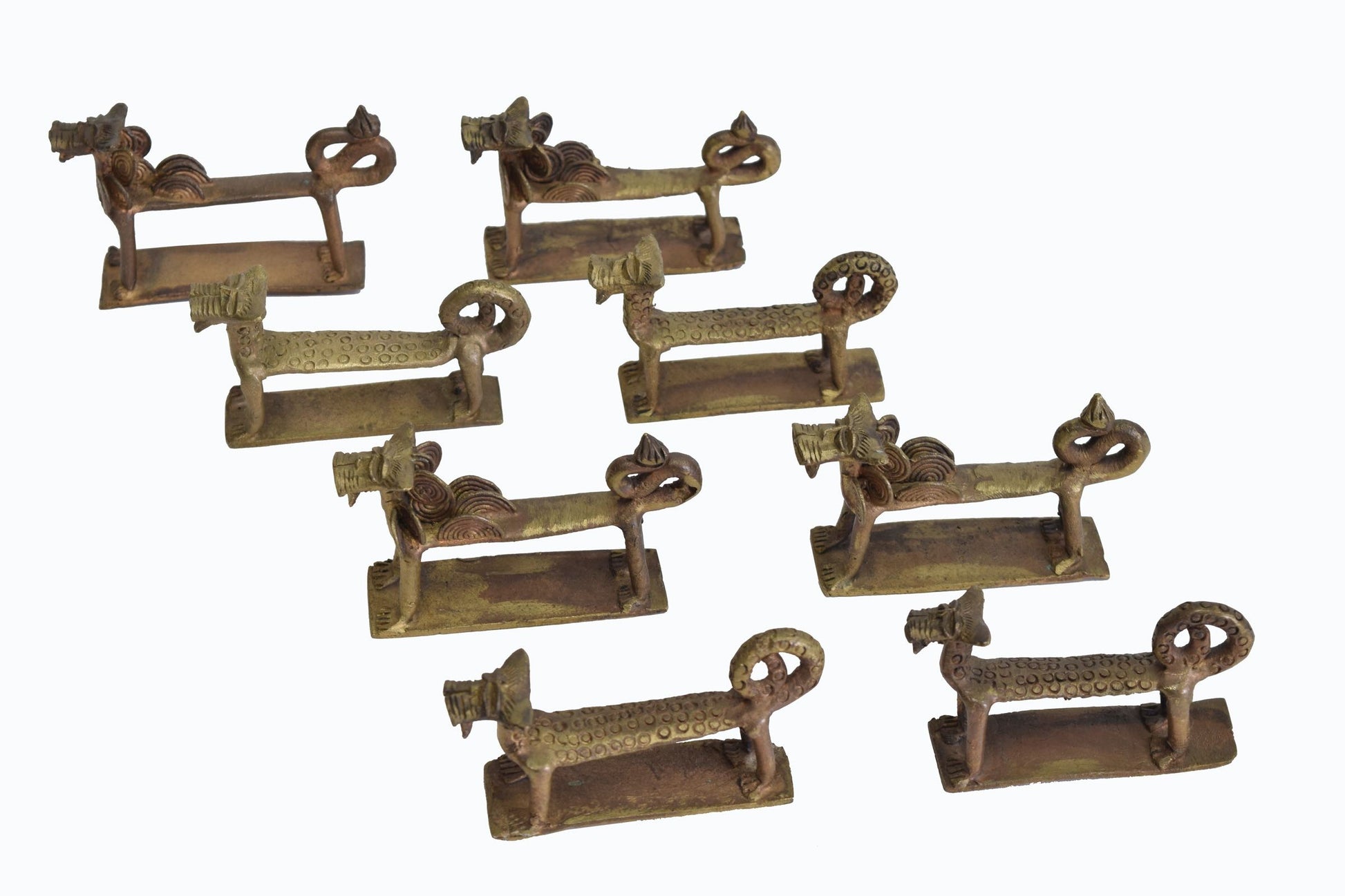 Juego de ocho restos de cuchillos de bronce de África occidental, probablemente procedentes de Nigeria o Benin.