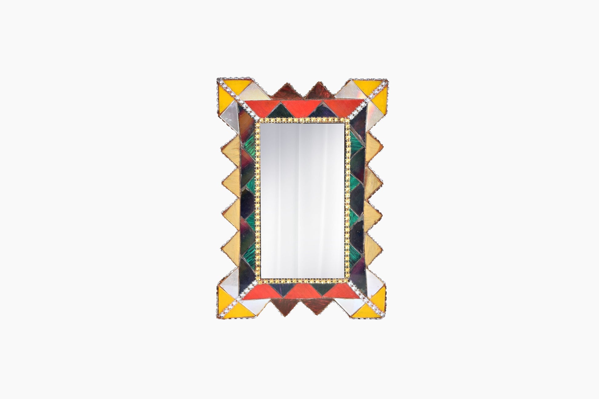 Estos pequeños espejos llamativos, hechos por un antiguo artesano en la zona de Kasbah de Marrakech, animarán cualquier dormitorio o baño.