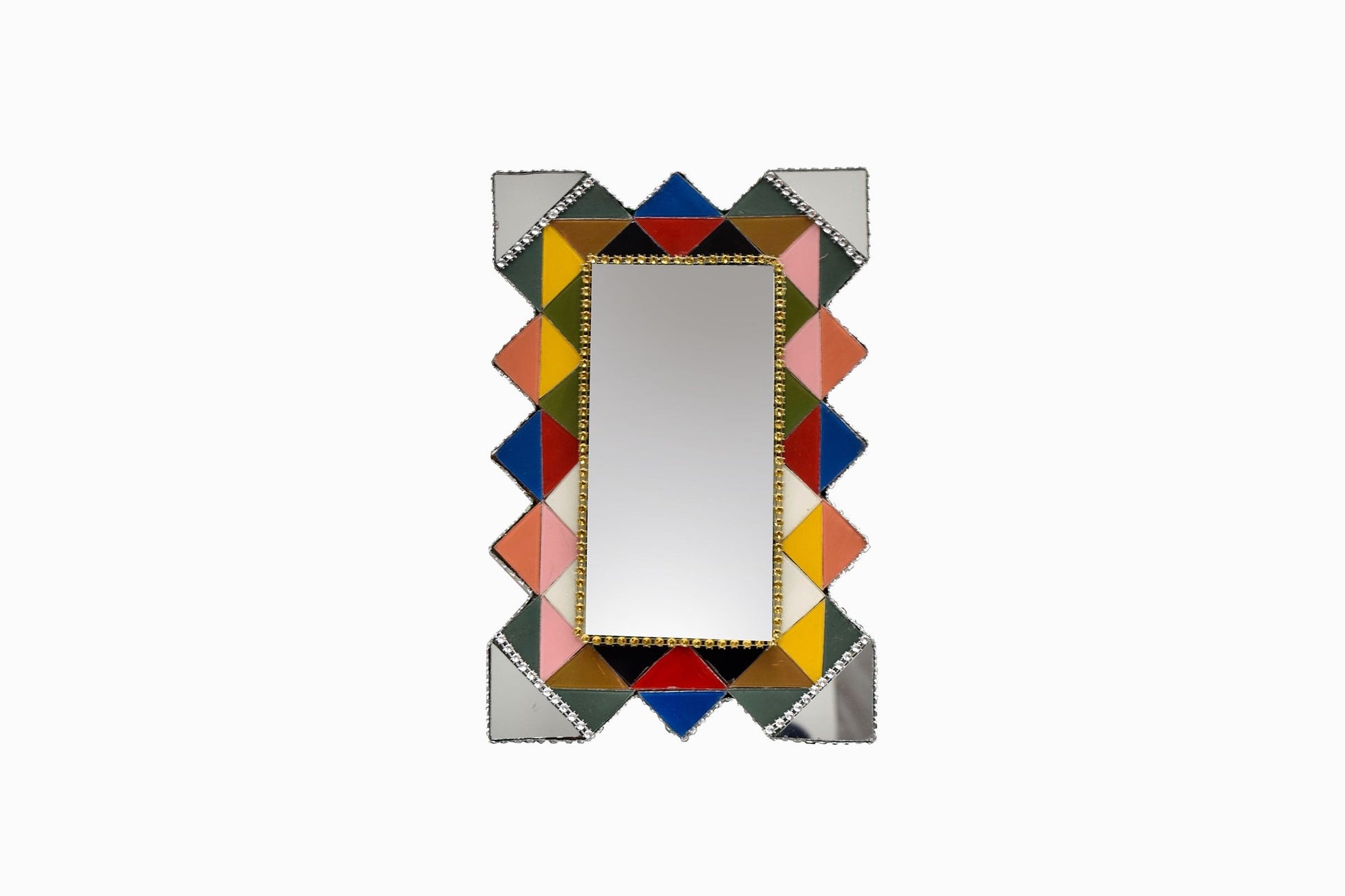 Estos pequeños espejos llamativos, hechos por un antiguo artesano en la zona de Kasbah de Marrakech, animarán cualquier dormitorio o baño.
