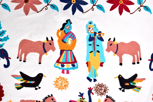 Tenture murale indienne contemporaine brodée à la main WH60/BS26