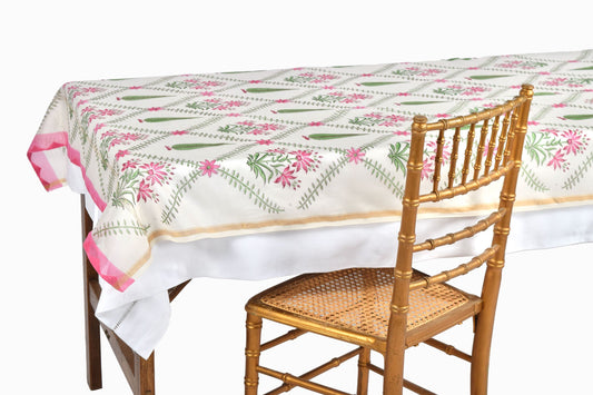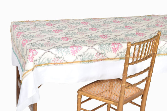 Bloc de chemin de table en coton imprimé de fleurs roses dans un motif en treillis TR3
