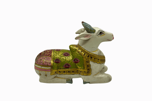 Painted wooden figure of a holy cow - Green