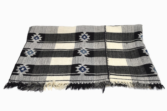 BS17/WH81 Couvre-lit ou tenture murale en laine indienne crème et bleu