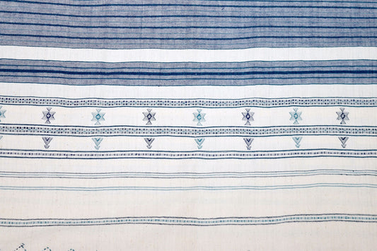 BS18/WH82 Couvre-lit ou tenture murale en laine indienne crème et marine