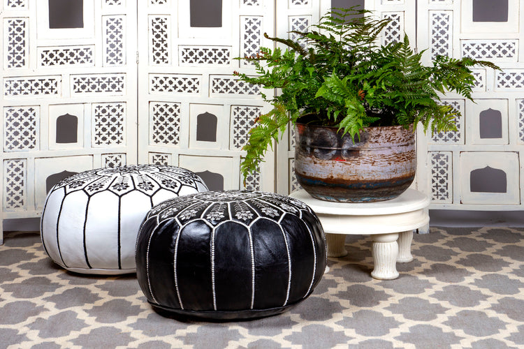 POUFS MAROCAINS EN PAILLE Indigo/Naturel