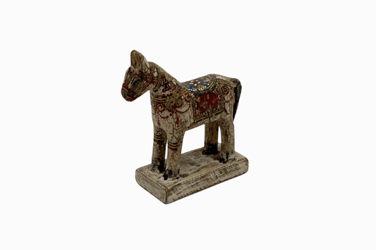 White painted small wooden horse with red saddle 2