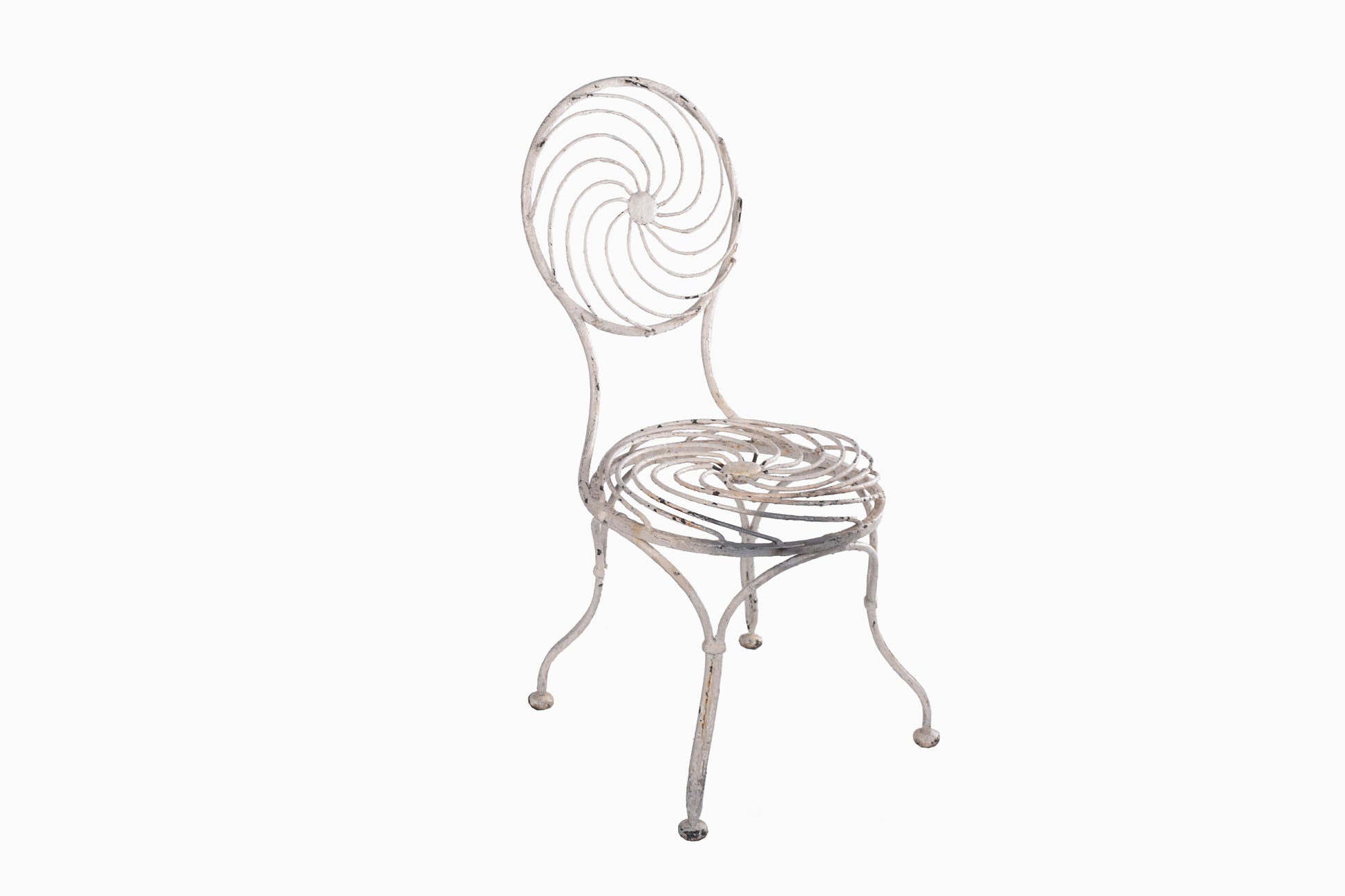 Une chaise à diaphragme en fer forgé blanc Regency, à l'origine dans l'orangerie de Shardeloes House, Amersham, Bucks