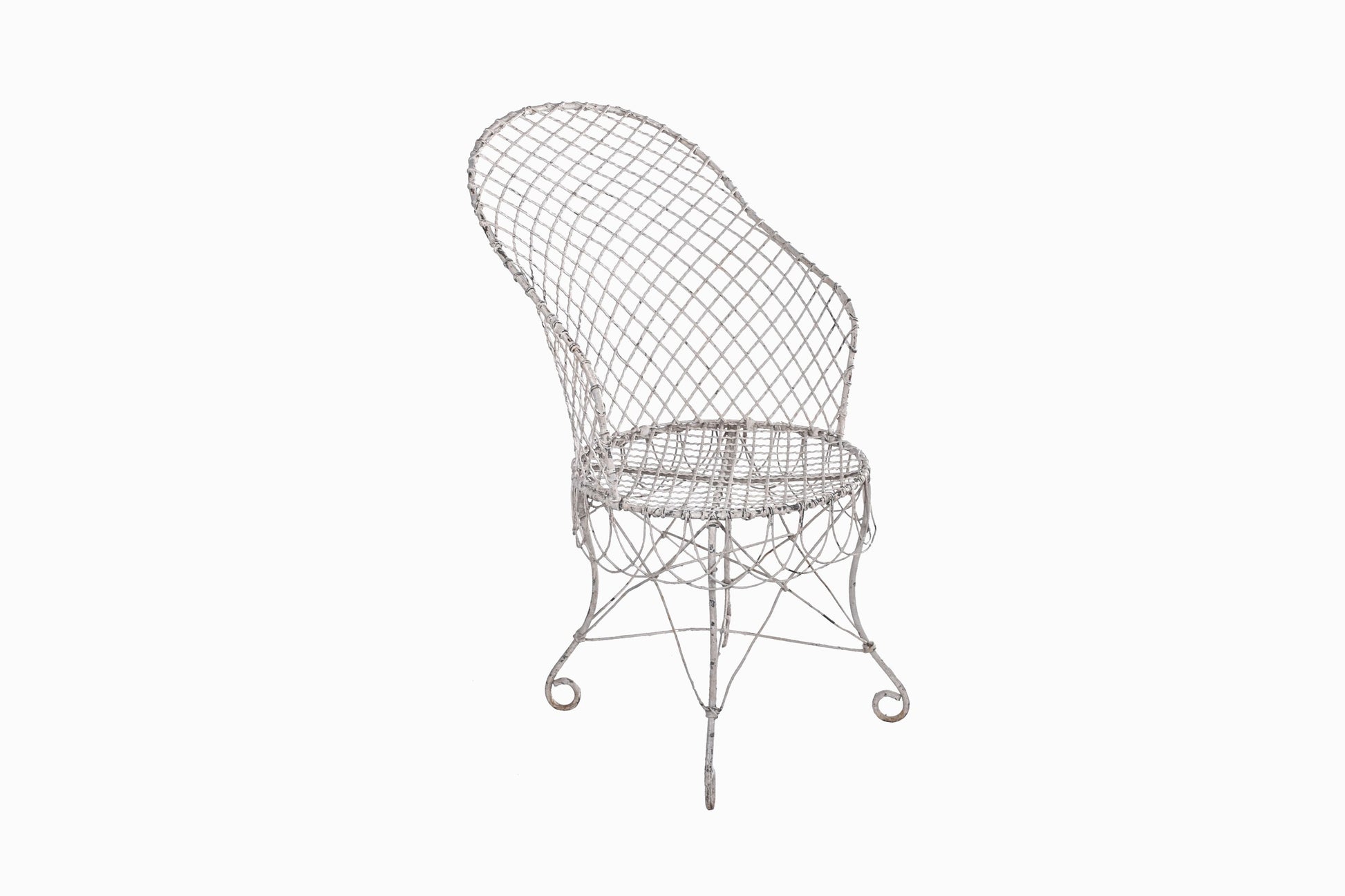 Une chaise de jardin en fer forgé de style Régence blanc.
