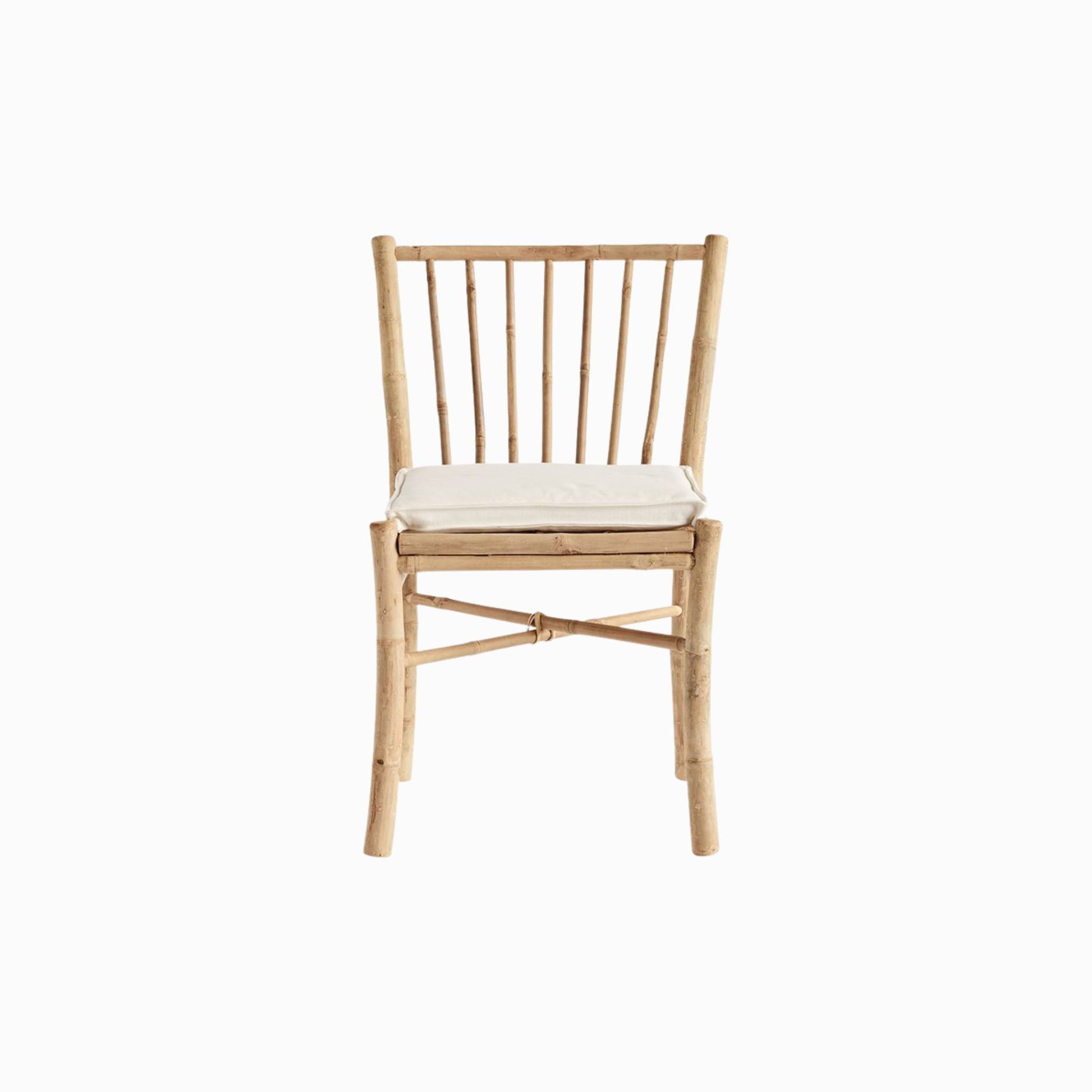 Jolies chaises de salle à manger en bambou faites à la main (sans accoudoirs) dans un design simple et épuré avec des lignes droites. Ces chaises peuvent être utilisées soit comme chaises de salle à manger, soit comme chaises de jardin d'appoint sur la terrasse pour l'été.