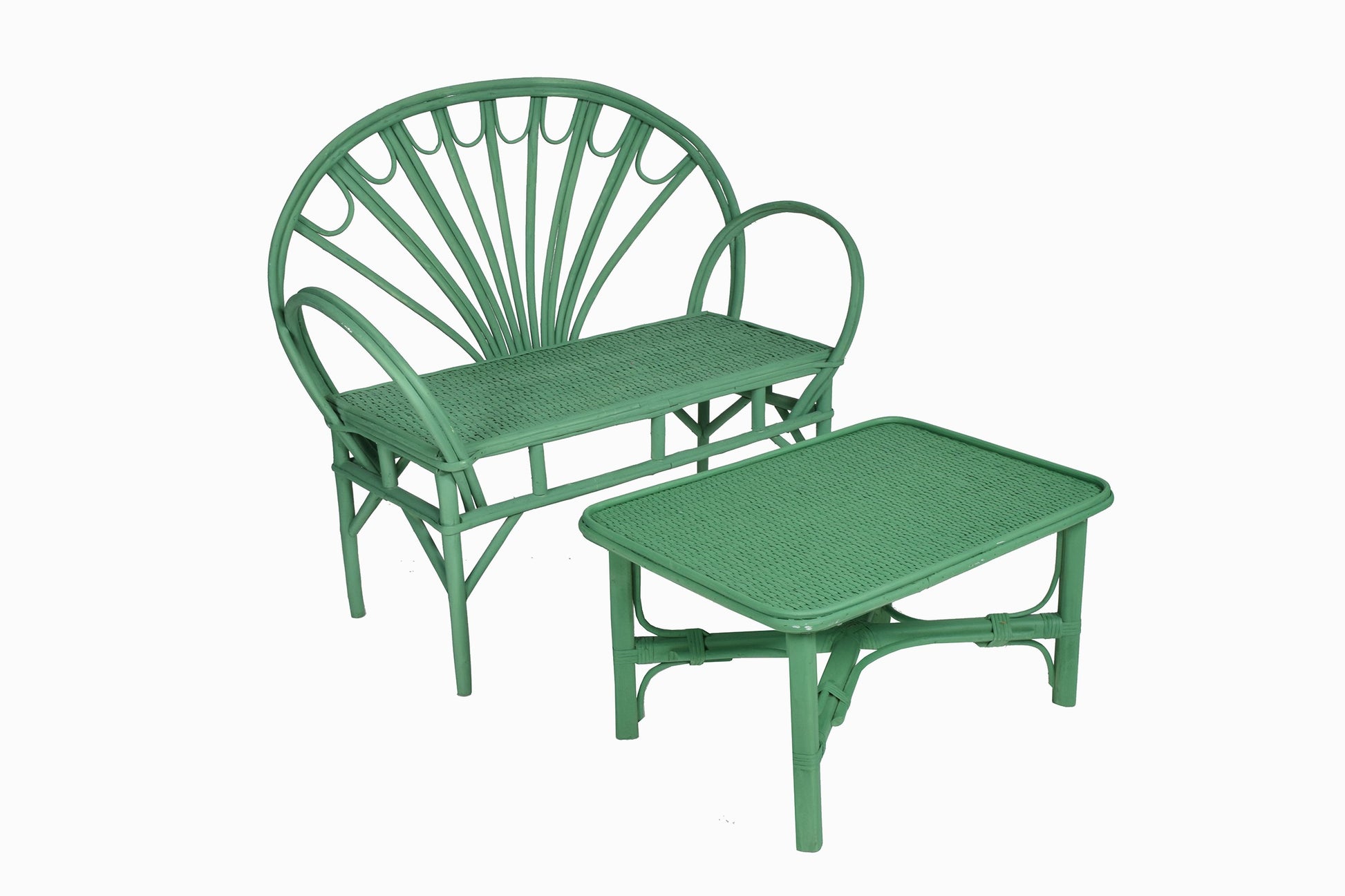 Table basse en bois courbé et rotin vert