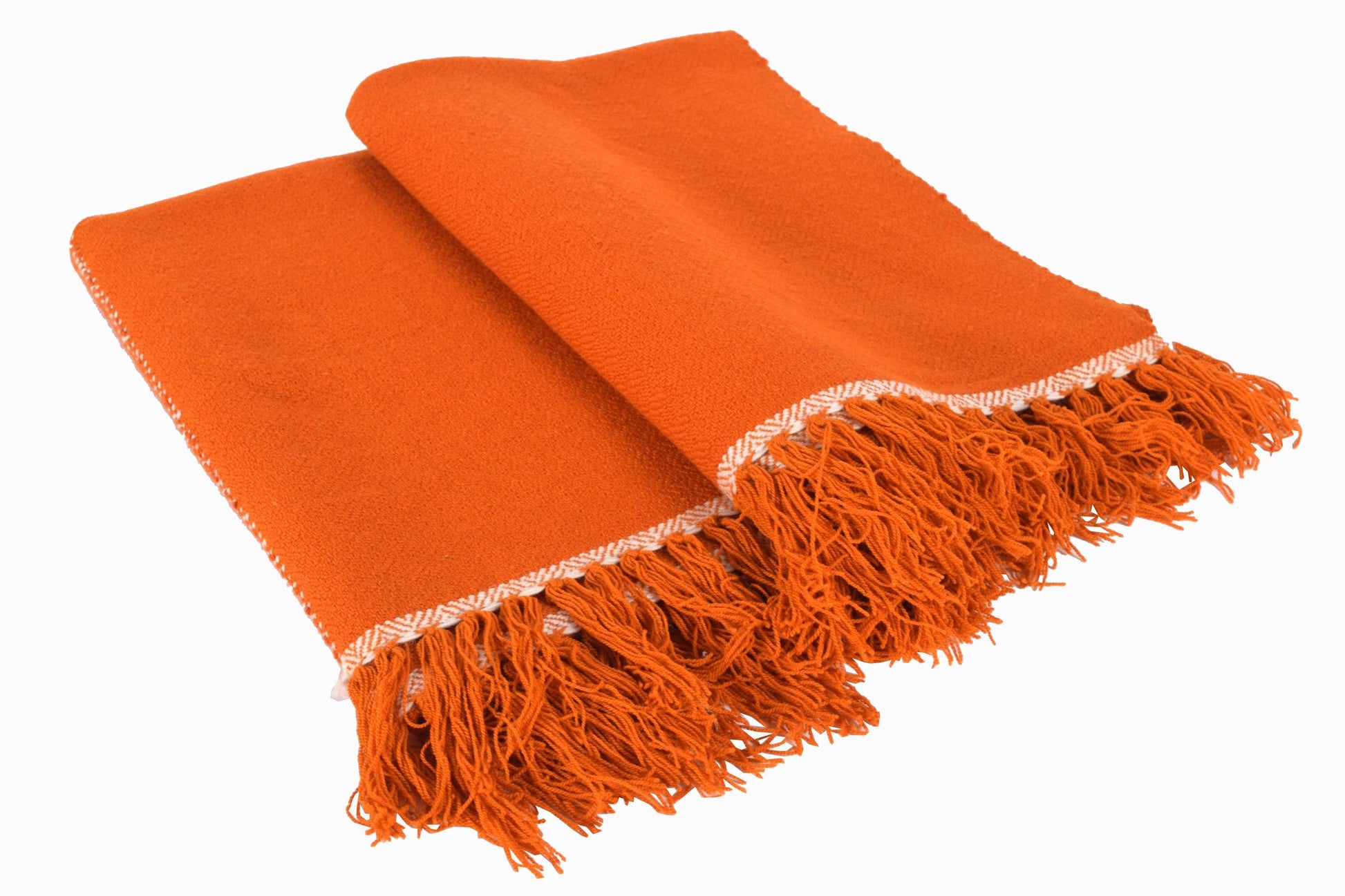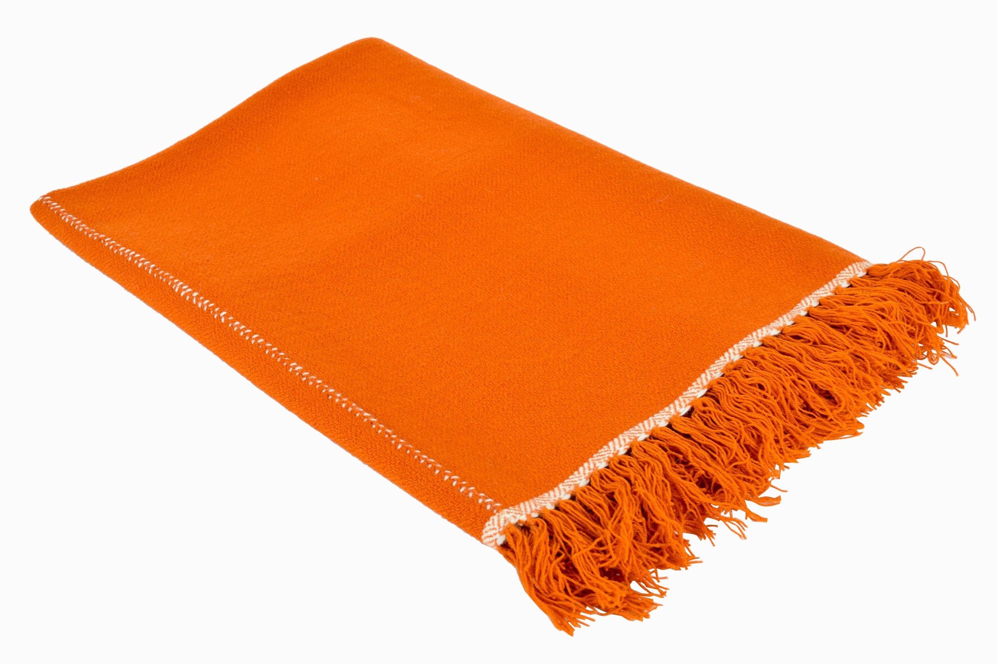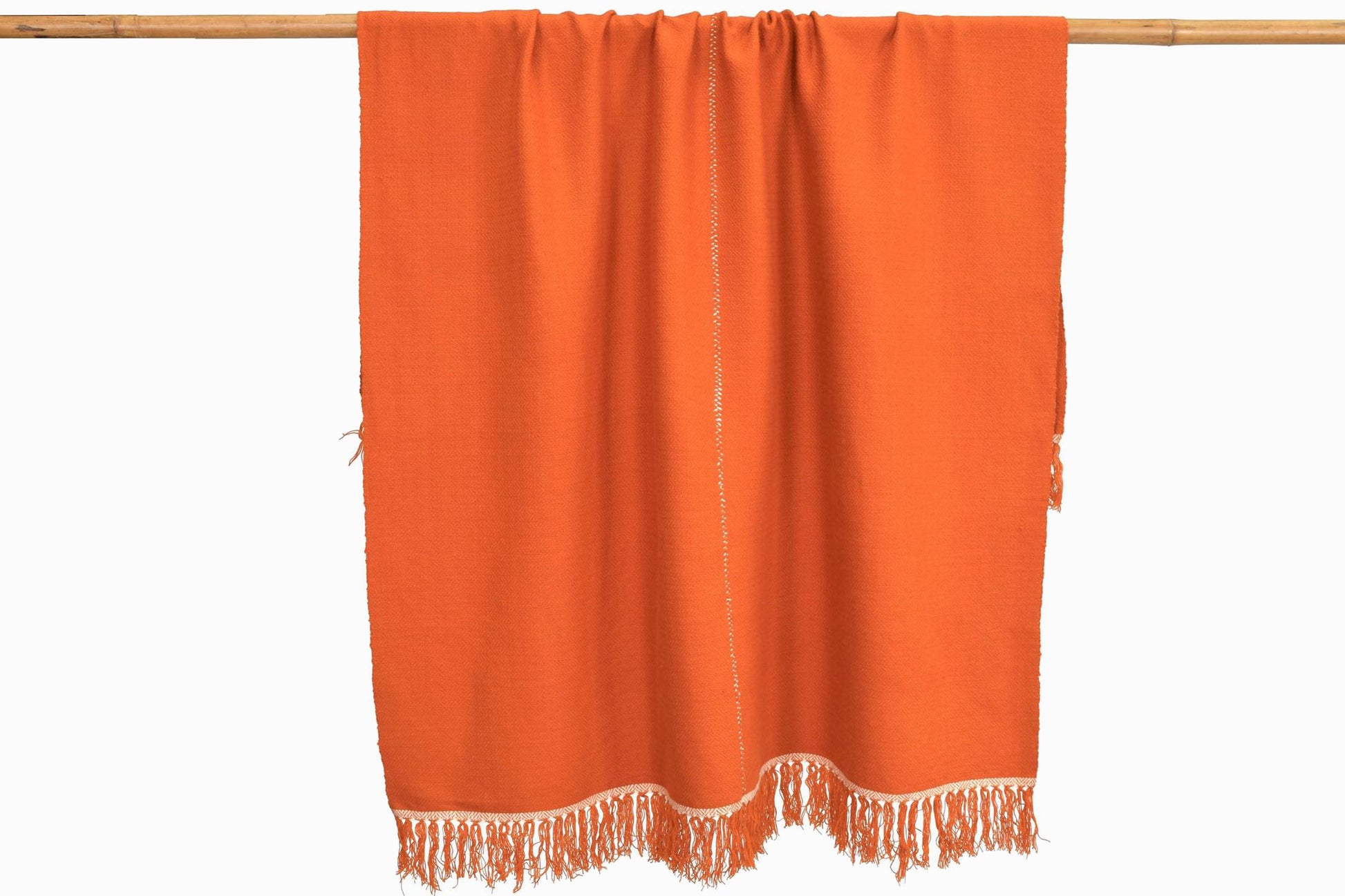 Tissé à la main sur des métiers à navette dans le royaume himalayen du Bhoutan, ce magnifique jeté en laine de haute qualité est fabriqué dans une fabuleuse nuance d'orange et constitue l'antidote parfait pour les nuits fraîches.