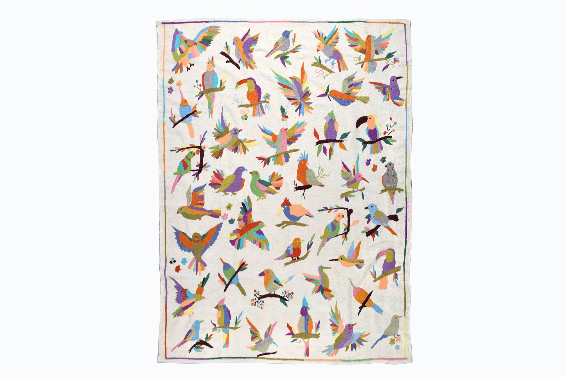 Un charmant tapis kilim en coton suzani du Pakistan, brodé à la main d'un motif d'oiseau.
