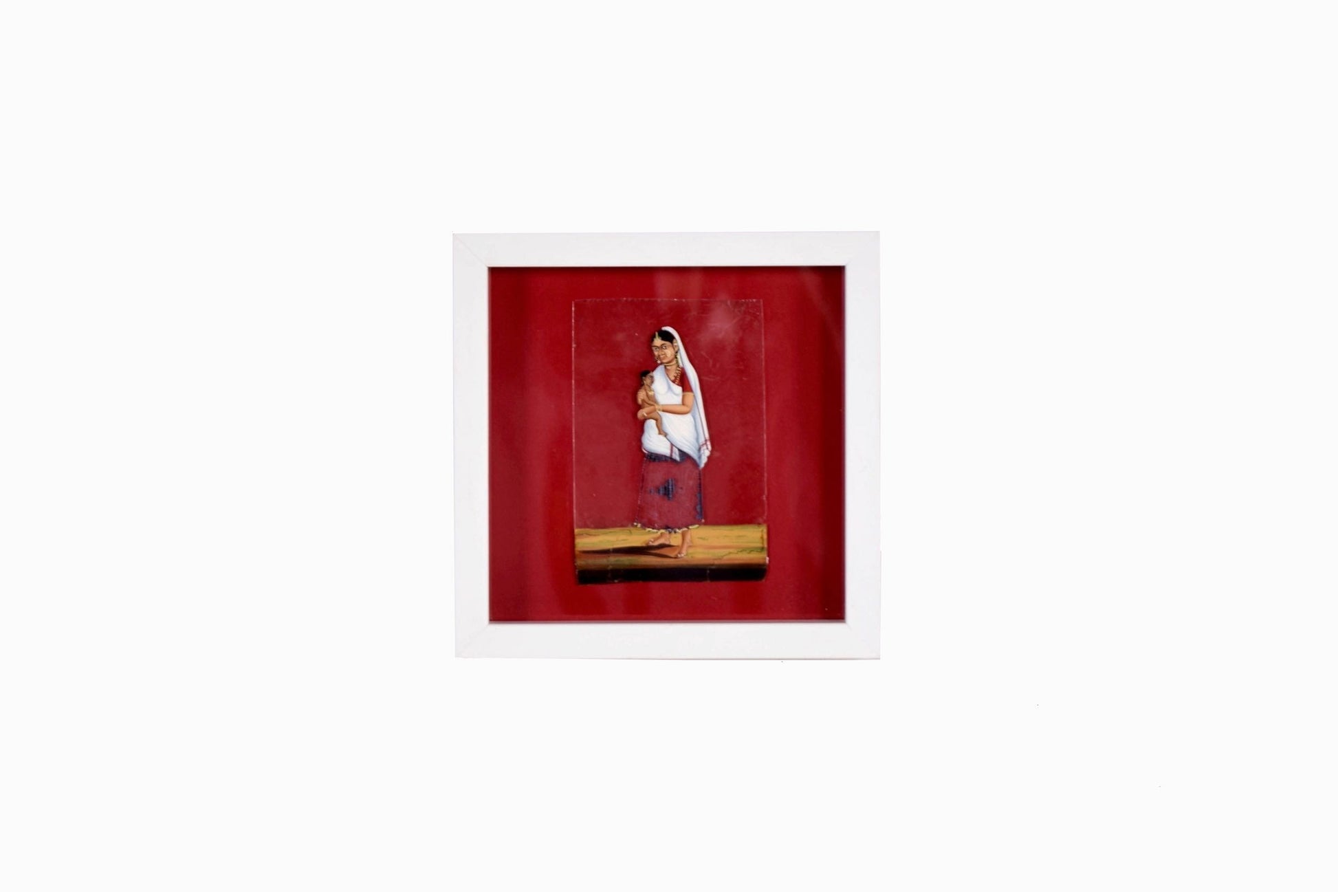 Une peinture indienne antique en mica représentant une mère et son enfant, datant de la fin du 19e siècle.