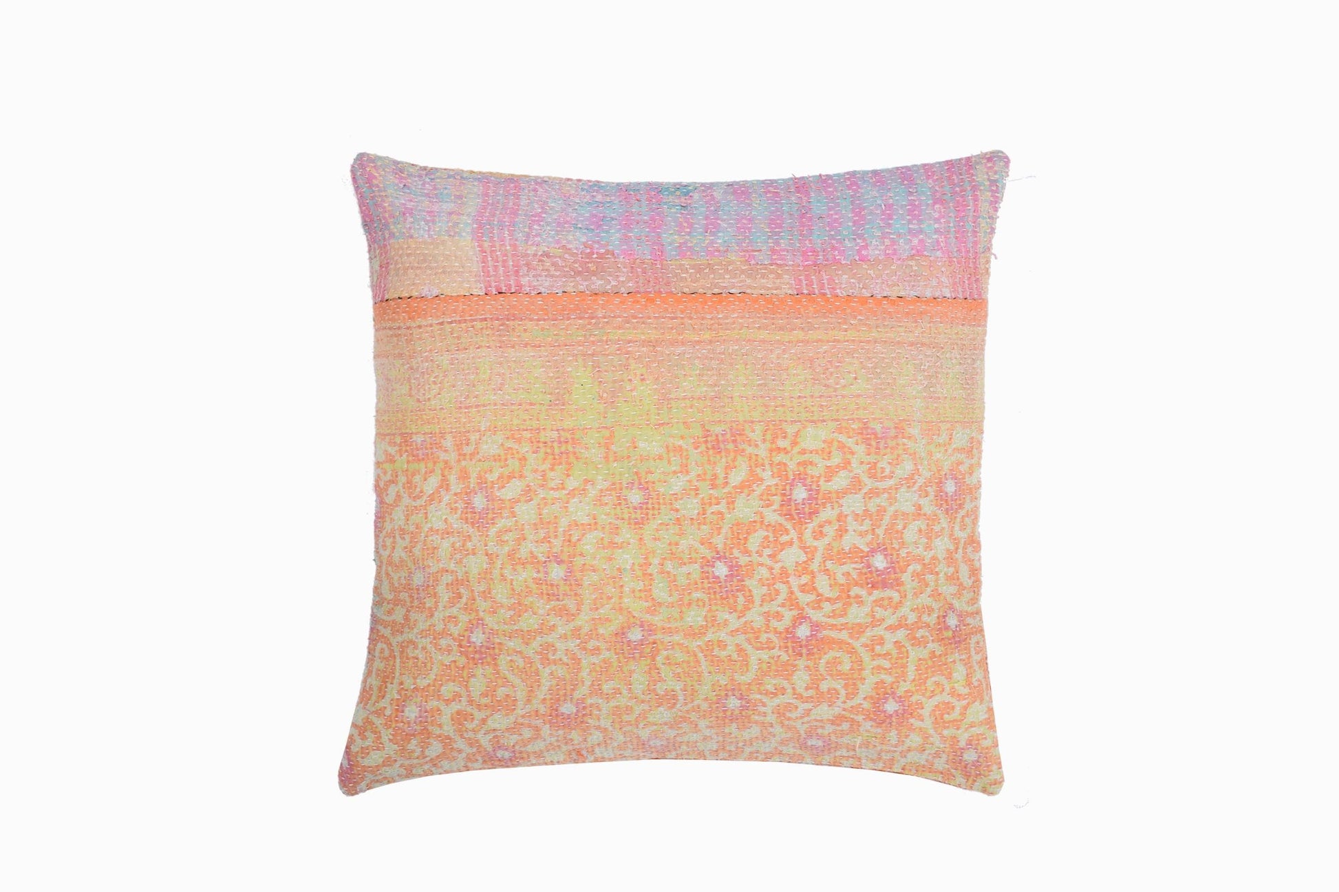 Ces jolis coussins indiens double face sont fabriqués à partir de chutes de tissus vintage puis cousus kantha. Le summum du bohème chic !
