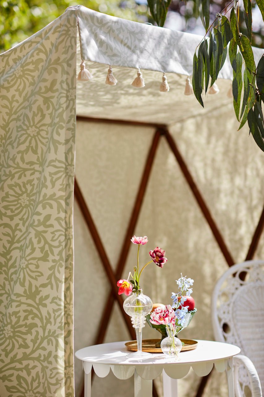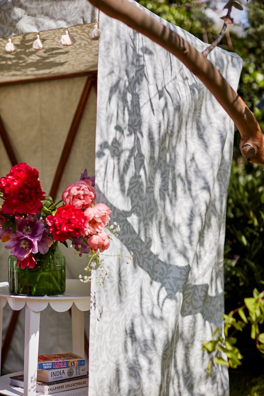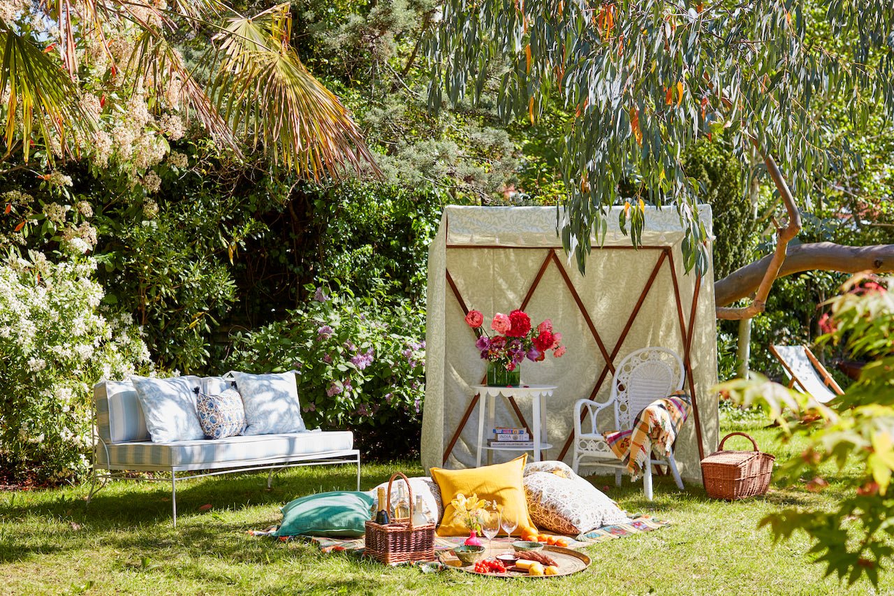La toile extérieure en coton est imperméable et peut être laissée dehors au printemps et en été.