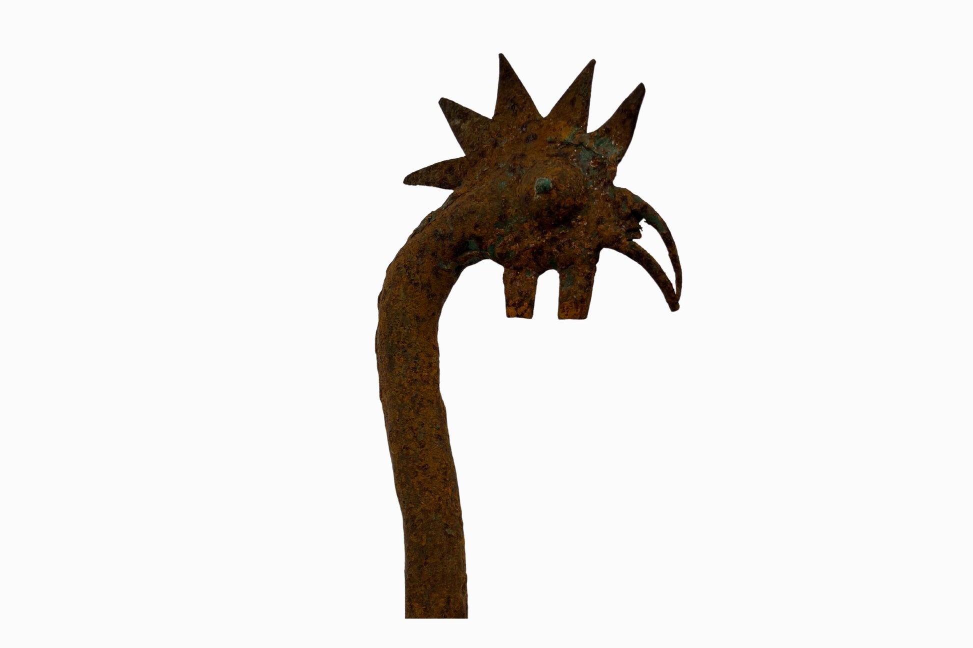 A garden statuette of a cockerel - or a rooster -with a lovely rusty patina.