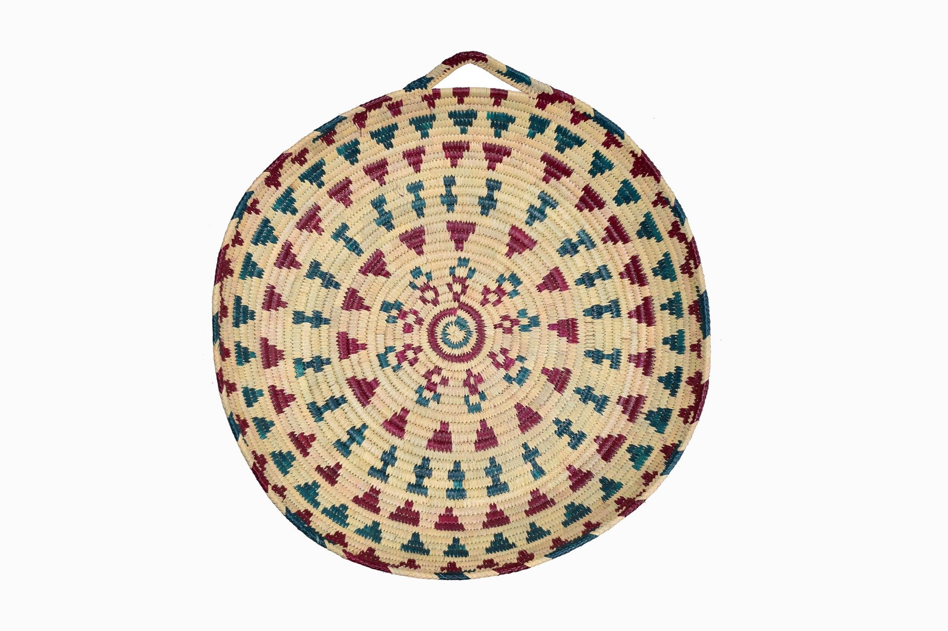 Ces jolis plateaux en paille sont fabriqués dans les montagnes du Moyen Atlas, au centre du Maroc. Ils peuvent être utilisés comme paniers de fruits ou constituent d’excellents objets de décoration pour le mur.