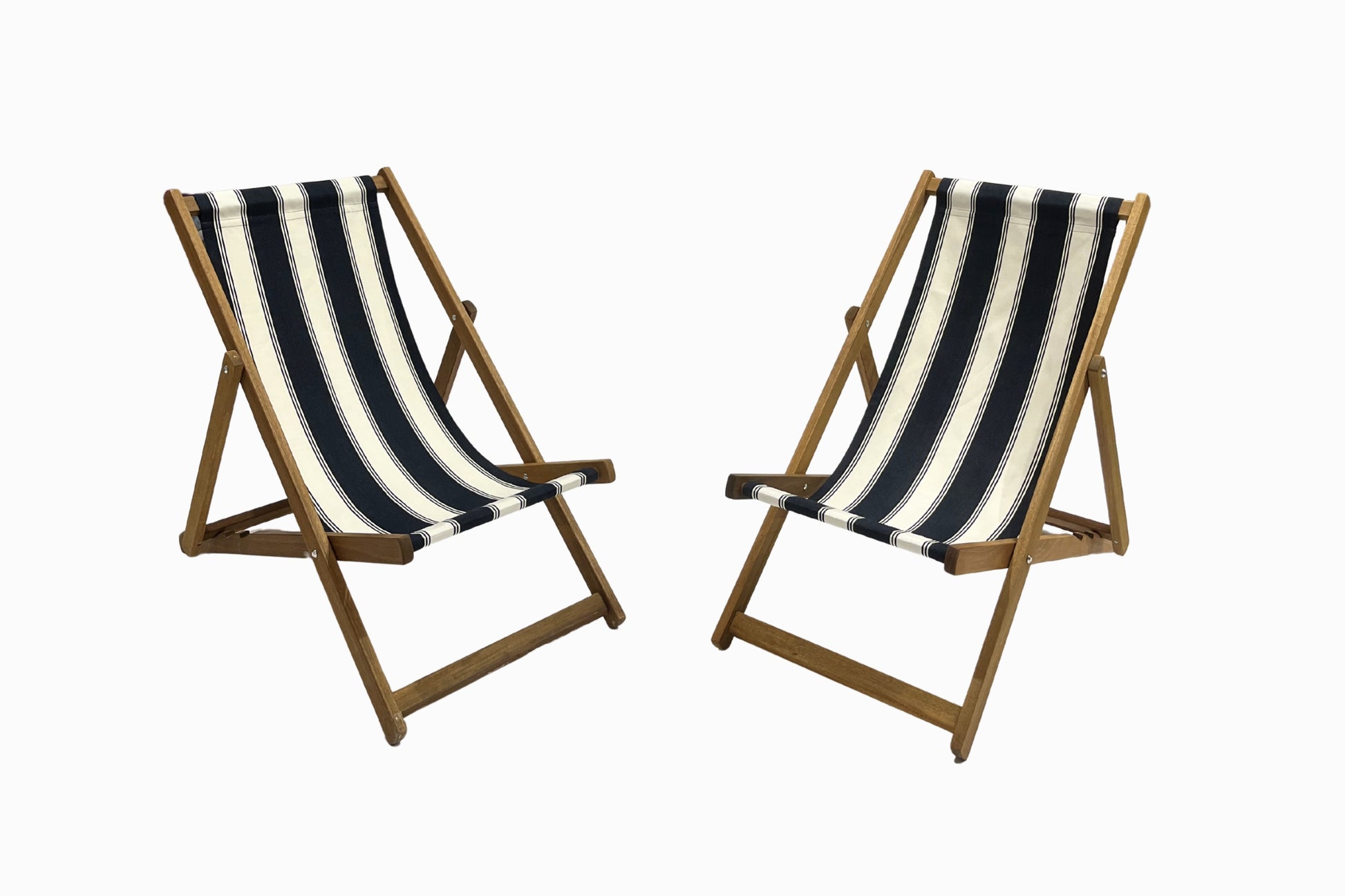 New to Raj Tent Club - a navy blue striped deckchair in our own, very special, hand woven fabric produced for us in southern India.
