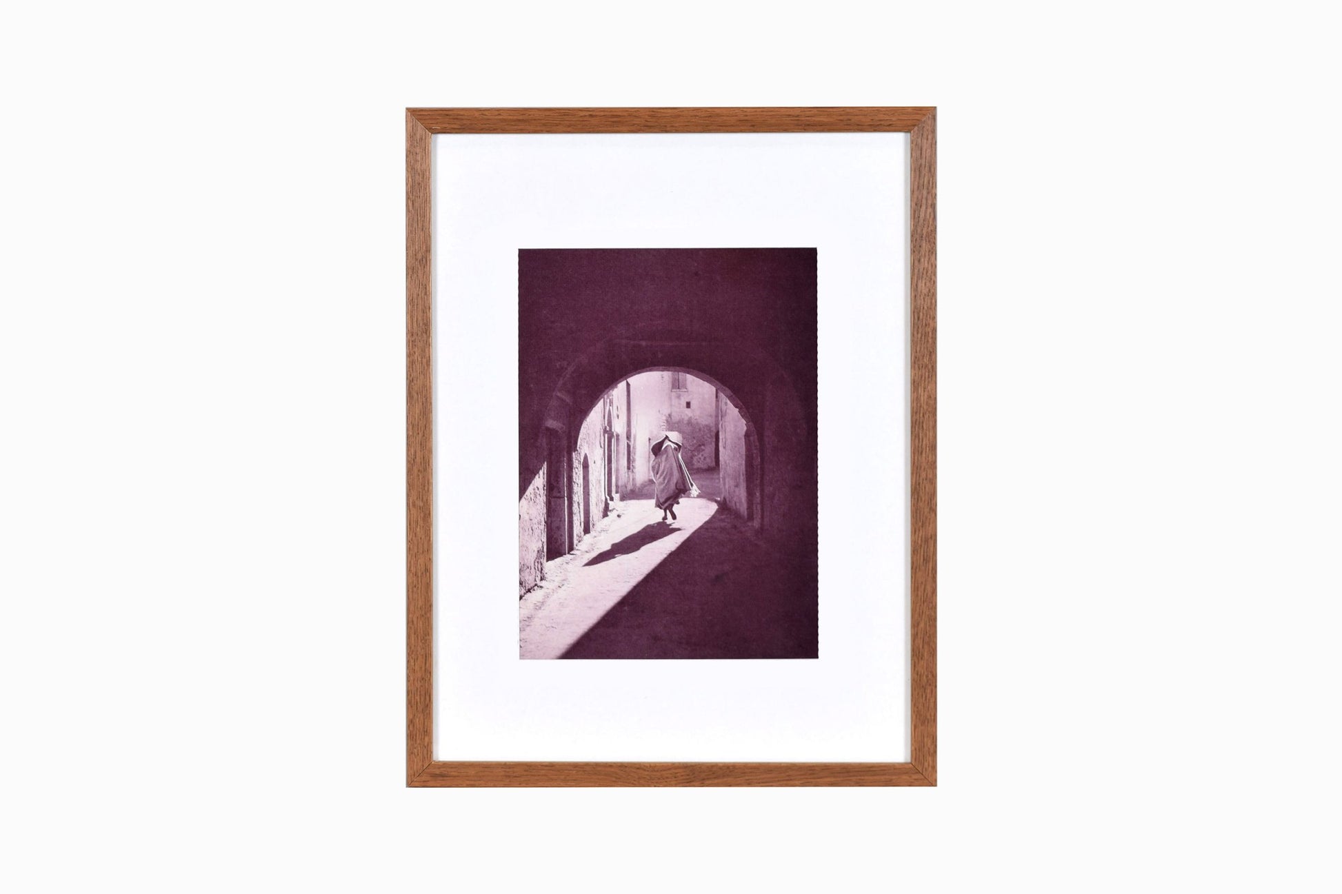Photographie d'une femme portant de l'eau dans une rue marocaine, prise par Marcelin Flandrin en 1920.