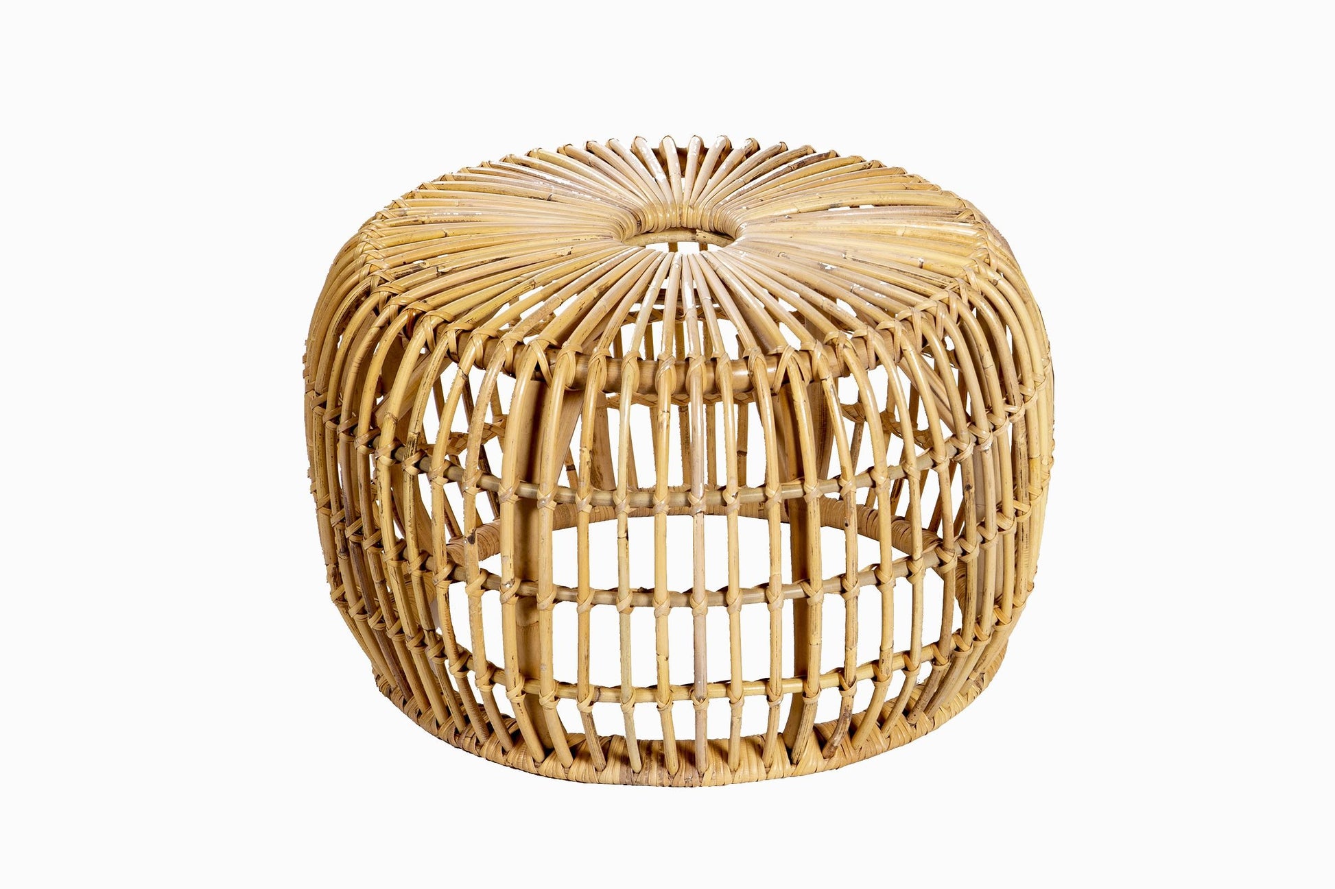 Un tabouret en rotin robuste peut également être utilisé comme table d'appoint.