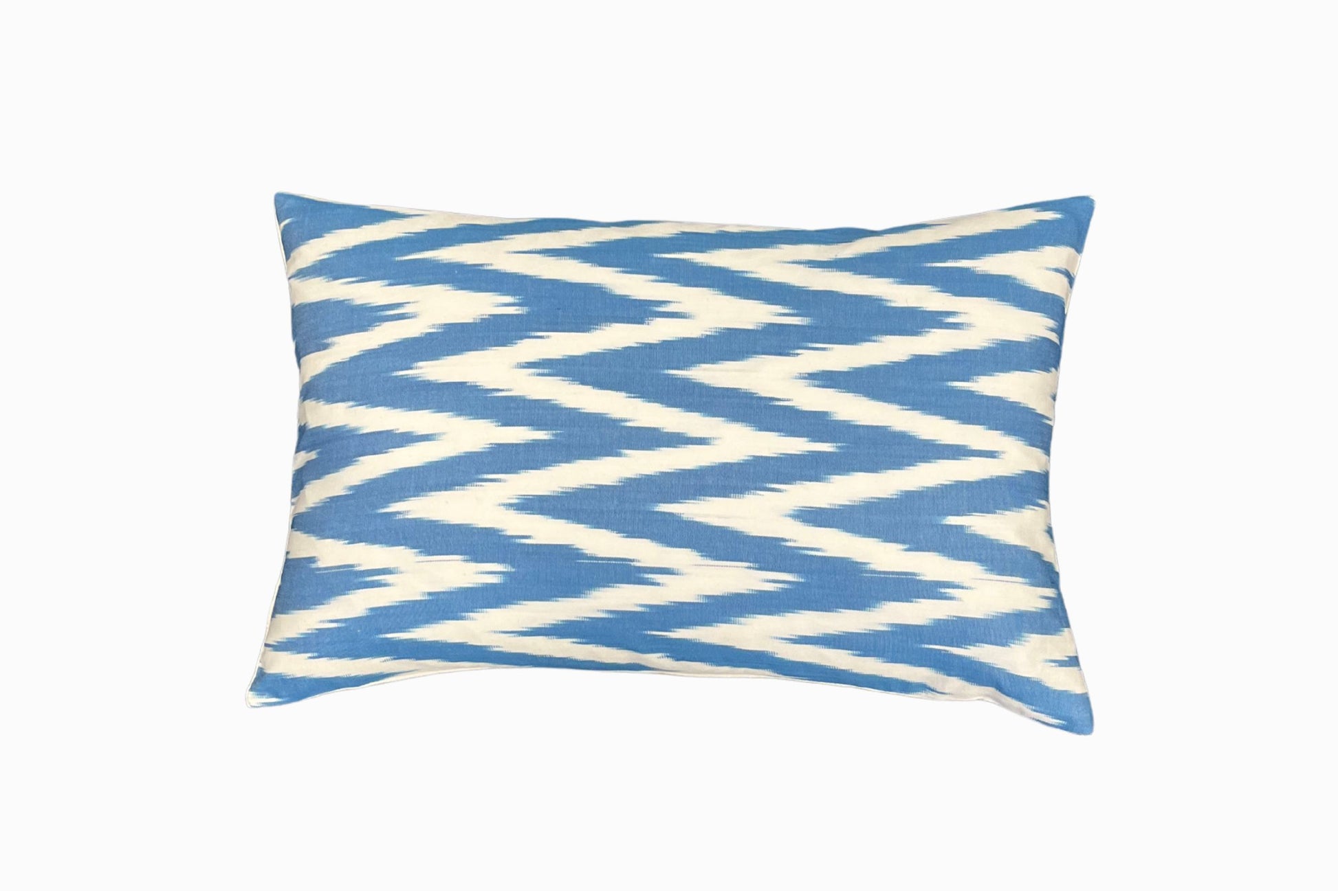 Rectangular silk and cotton Ikat cushion - blue