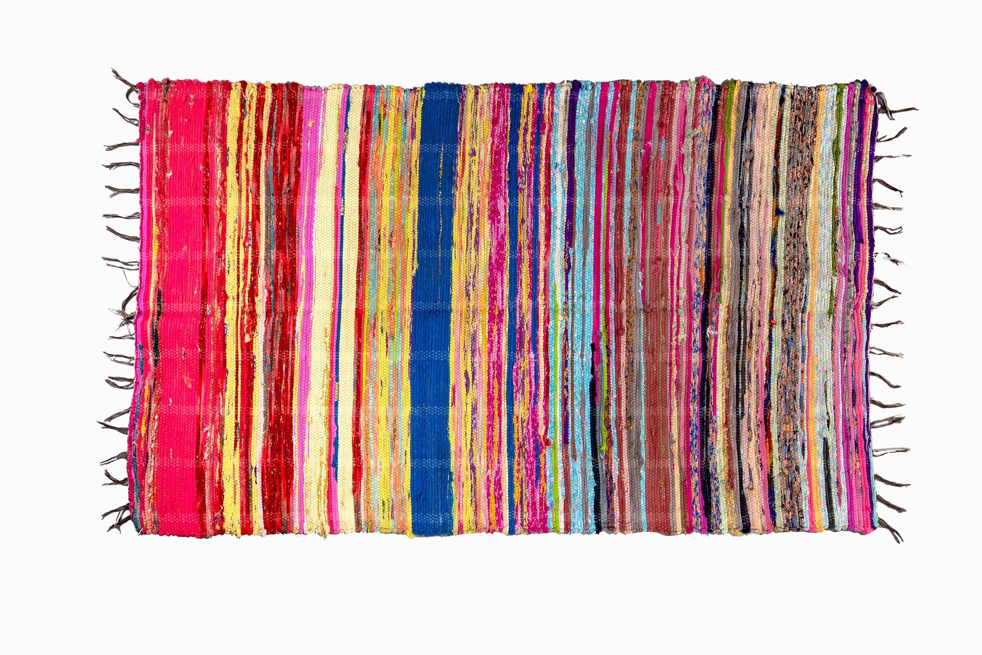 Voici un autre kilim en laine boucherouite, fabriqué par les Berbères du Haut Atlas.