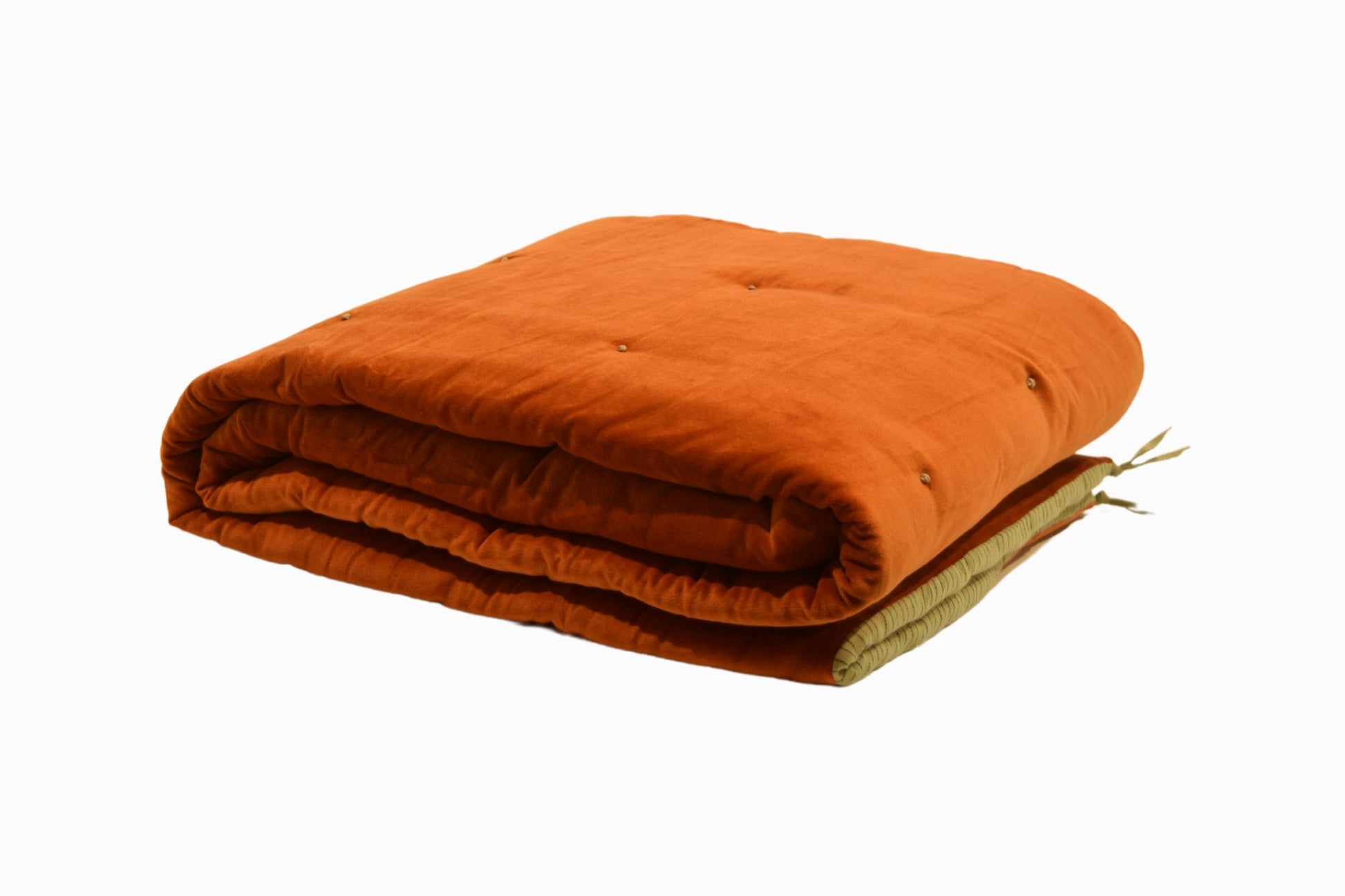 A soft and luxurious velvet bedthrow in burnt Orange.