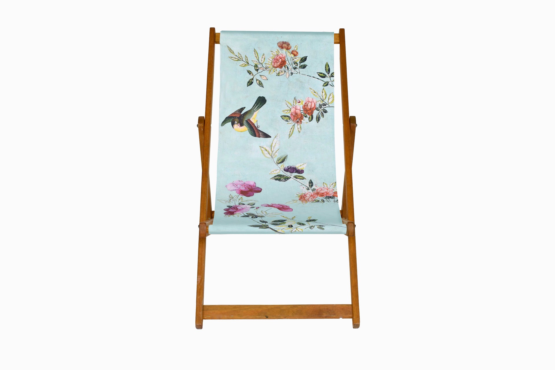 Cette chaise longue élégante est livrée avec une toile 100 % coton sur un cadre en bois dur FSC. L'écharpe en tissu Chinoiserie a été réalisée en collaboration avec le V&A.