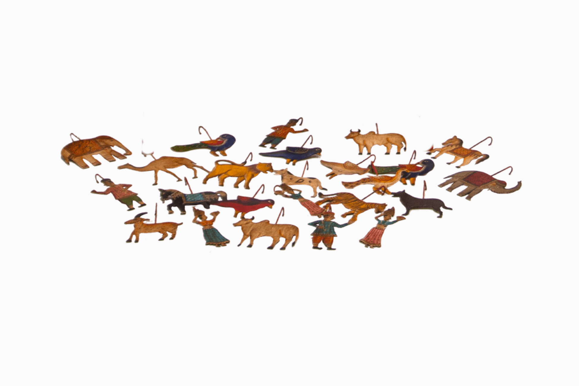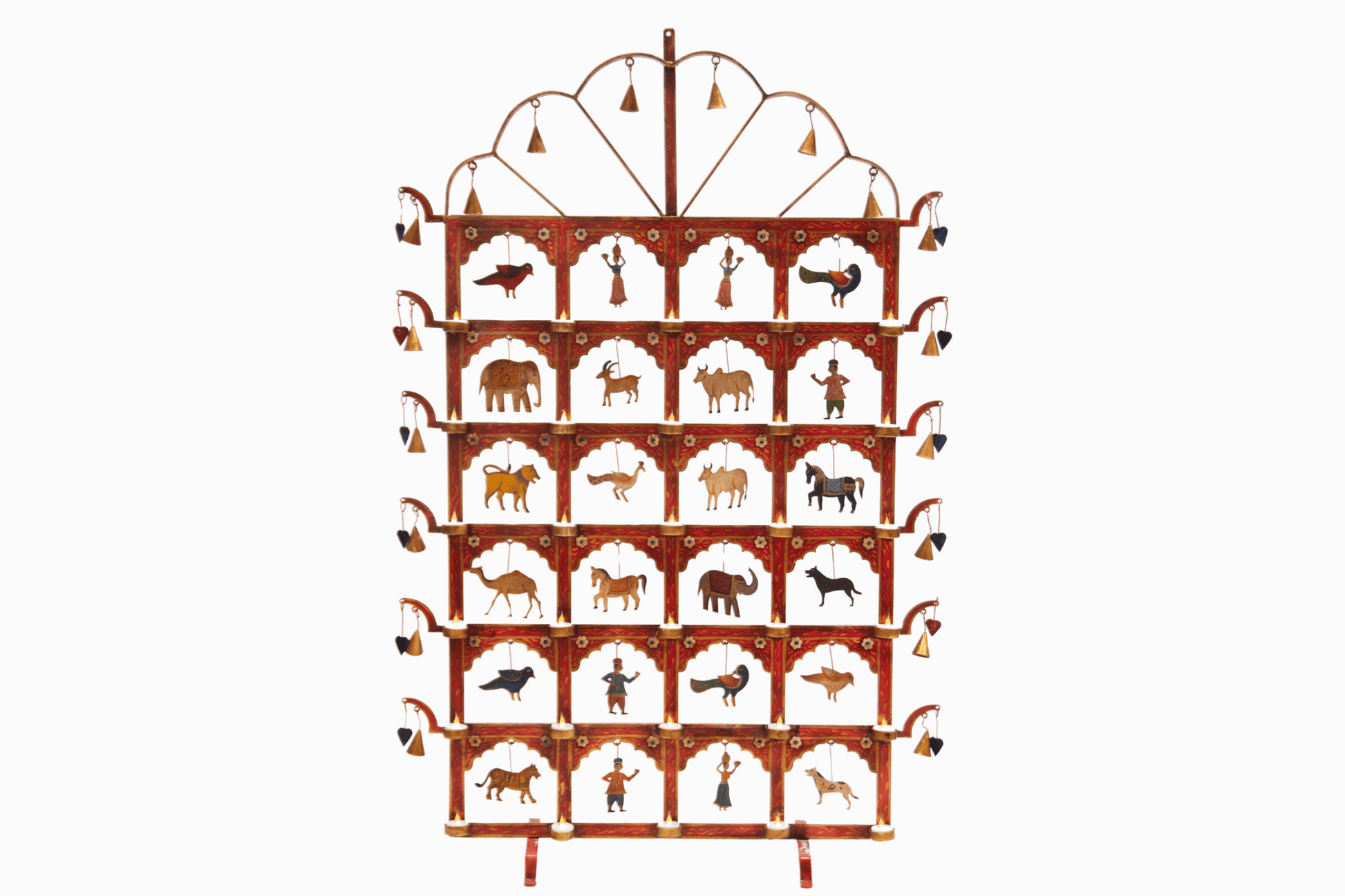 A very unusual and very special advent calendar. Made in India, it's composed of a hand painted cut-out metal frame and a selection of 24 figures to hang on it as the days countdown to Christmas.