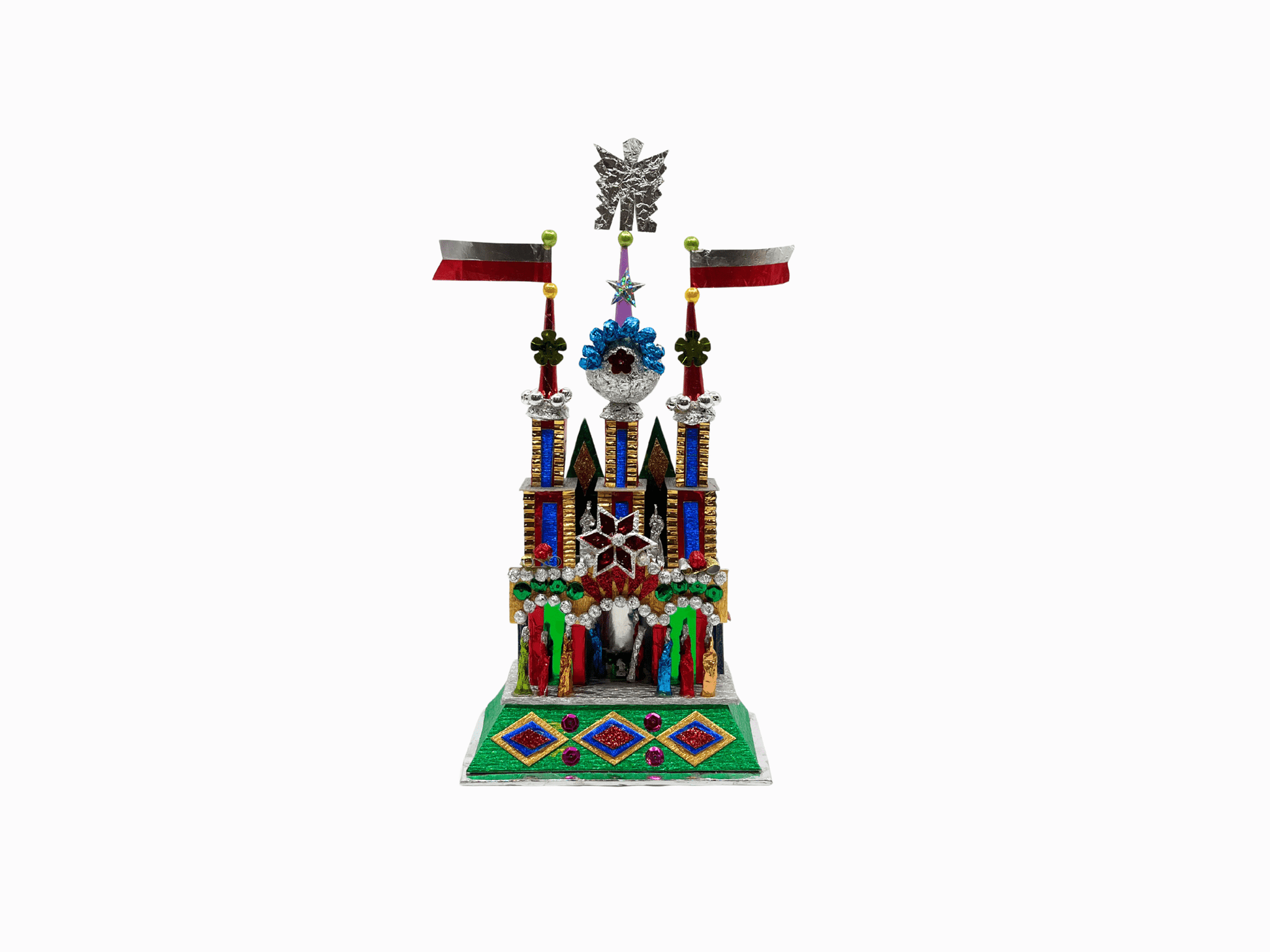 We are pleased to re-introduce our collection of Polish Nativity Churches called Kraków Szopki. Originating in nineteenth century Cracow, Szopki – nativity scenes used for travelling puppet shows - are the jewel in the crown of Polish folk art. Initiated by Cracow’s woodworkers and masons to generate extra income before Christmas, by 1937 the city’s municipal authority had instigated a Szopka competition which still takes place every year in the main market square. Crafted from unassuming materials including cereal boxes and sweet wrappers, the architecture of Poland’s cultural capital is recreated in beautifully intricate miniature then covered from top to bottom in jewel-bright foil, making a joyful backdrop for the Nativity of Jesus. From hand-high to half a metre tall, brighten your mantelpiece with one of Eastern Europe’s greatest festive traditions.