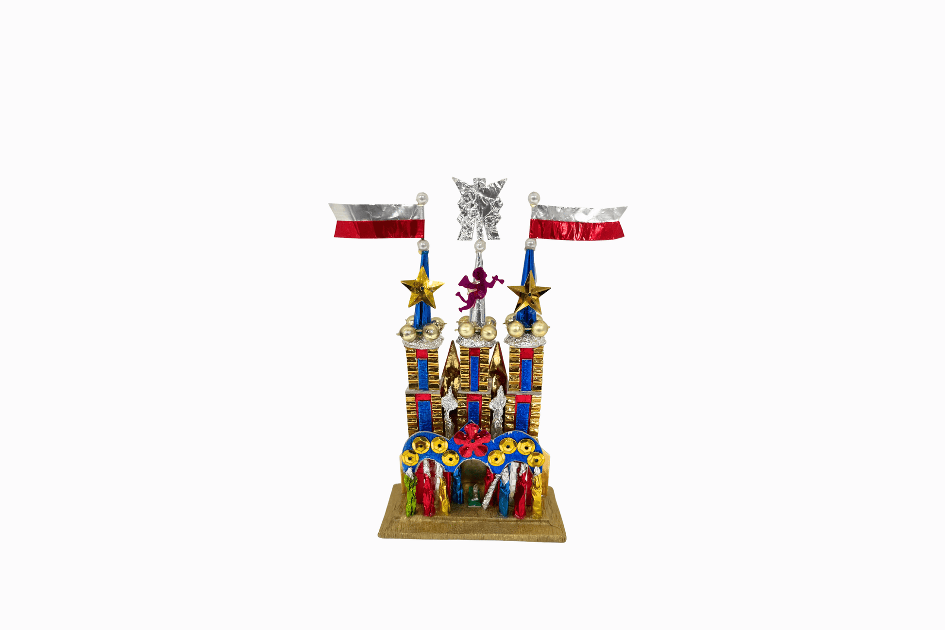 We are pleased to re-introduce our collection of Polish Nativity Churches called Kraków Szopki. Originating in nineteenth century Cracow, Szopki – nativity scenes used for travelling puppet shows - are the jewel in the crown of Polish folk art. Initiated by Cracow’s woodworkers and masons to generate extra income before Christmas, by 1937 the city’s municipal authority had instigated a Szopka competition which still takes place every year in the main market square. Crafted from unassuming materials including cereal boxes and sweet wrappers, the architecture of Poland’s cultural capital is recreated in beautifully intricate miniature then covered from top to bottom in jewel-bright foil, making a joyful backdrop for the Nativity of Jesus. From hand-high to half a metre tall, brighten your mantelpiece with one of Eastern Europe’s greatest festive traditions.
