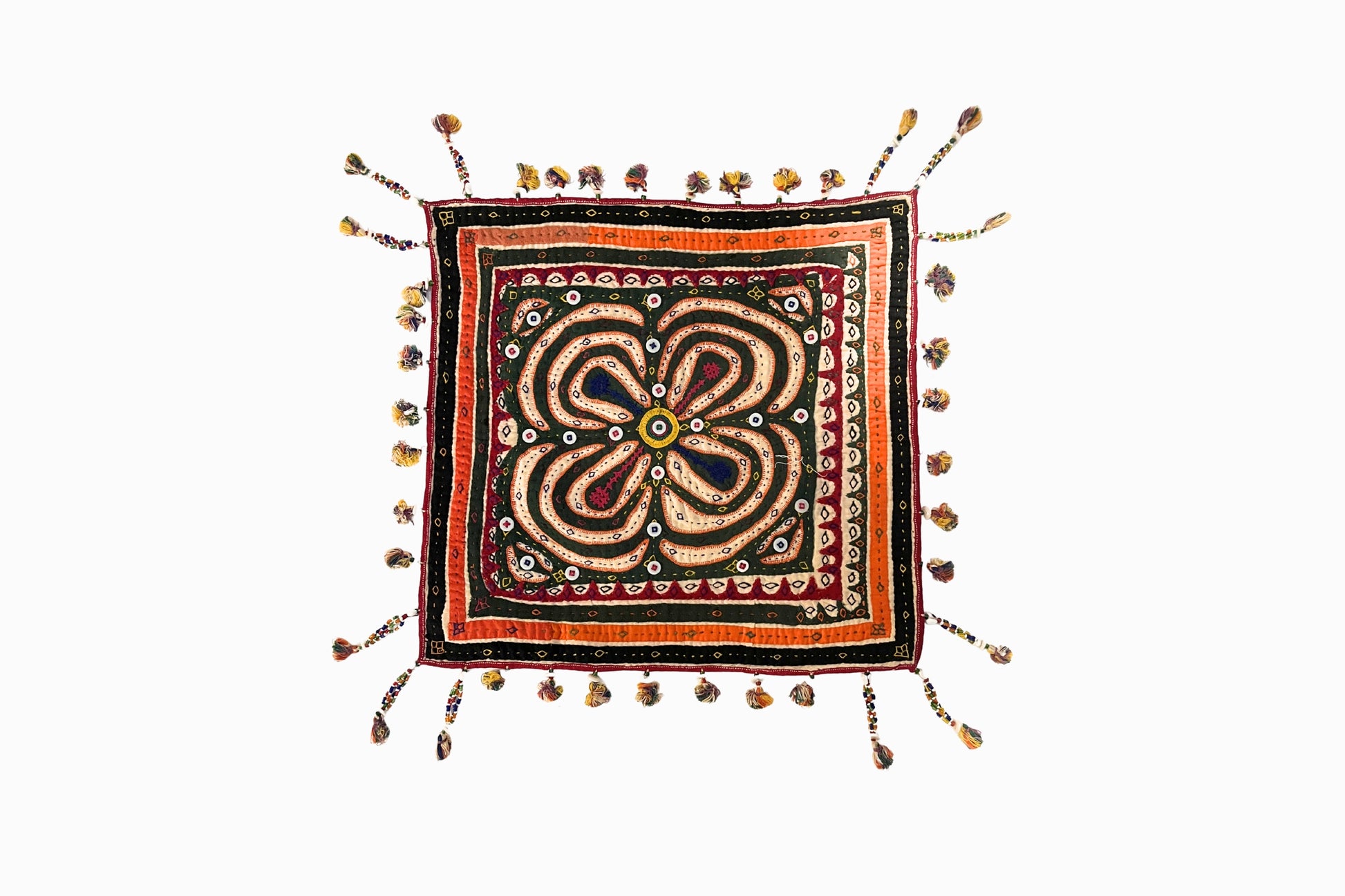 With applique work, embroidery, buttons and beading, a lovely, small vintage panel from the Rabari people of Gujarat, India.